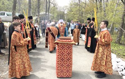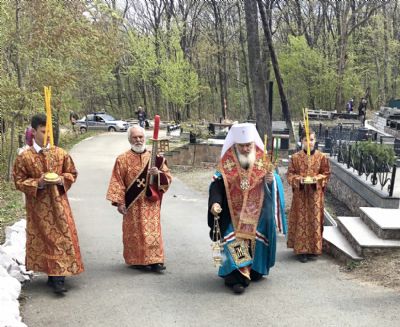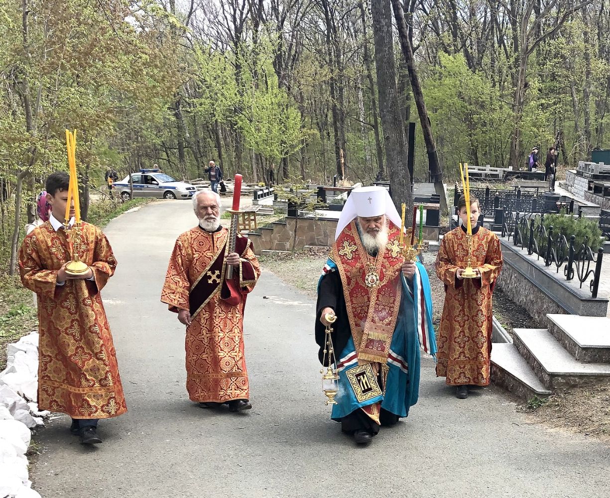 Владивосток. Митрополит Вениамин возглавил служение Соборной панихиды на Лесном кладбище 7 мая 2019 года, во вторник 2-й седмицы по Пасхе — день Радоницы.