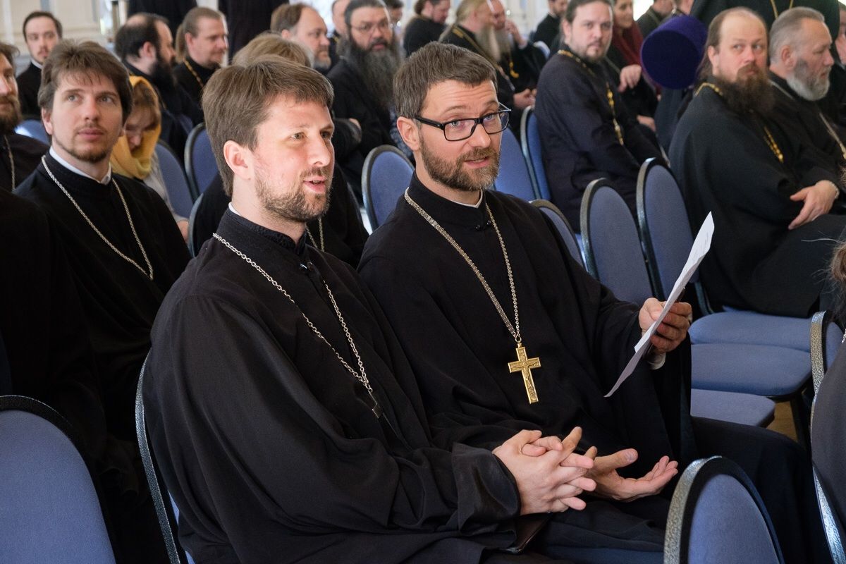 В дискуссии участвовали члены комиссии Межсоборного присутствия, докладчики, благочинные и настоятели храмов Санкт-Петербургской епархии, представители СПбДА. В частности, председатель молодежногоепархиального отдела протоиерей Константин Головатский отметил, что такие формы служения, как работа с молодежью, военными, спортсменами, социальная работа и взаимодействие с общественными организациями в интересах Церкви являются неотъемлемой частью пастырского служения. Супруга протоиерея Евгения Шогенова Александра Шогенова высказалась о важности института священнической семьи и о моральной поддержке супругов, сотрудник управления делами Московской Патриархии Евгения Жуковская обратила внимание на важность работы с представителями молодого поколения, потенциально склонными к служению Церкви.