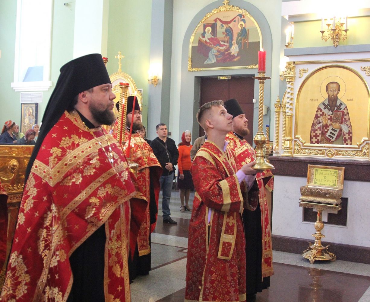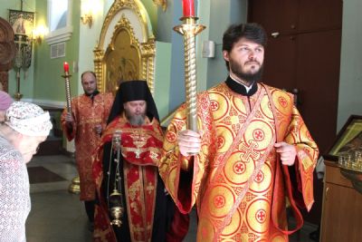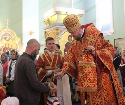Его Высокопреосвященству сослужили ключарь собора иеромонах Иоанн (Костин), игумен Антоний (Каменчук), игумен Тихон (Иршенко), протоиерей Игорь Шевчук, иерей Максим Точуков, иерей Владимир Брагин.