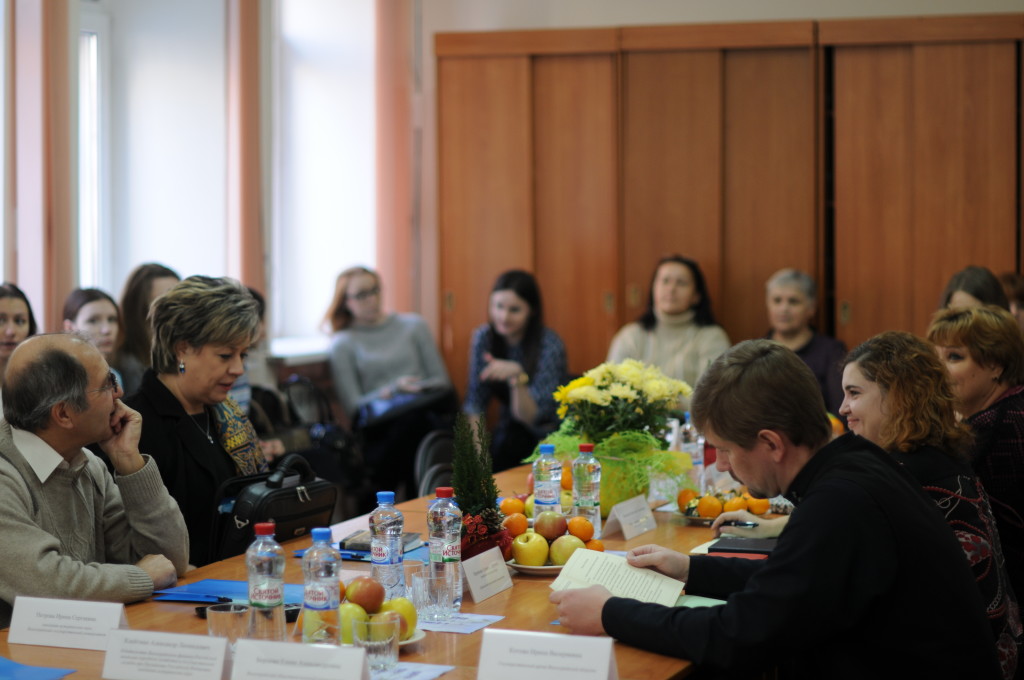 С приветственным словом в адрес участников круглого стола выступили соисполнители проекта кандидат исторических наук, старший преподаватель Волгоградского государственного университета И.С. Петрова и заместитель начальника отдела Государственного архива Волгоградской области И.В. Котова. В обсуждении вопросов круглого стола приняли участие: заведующая отделом Волгоградского областного краеведческого музея И.В. Талдыкина, представитель областного радио ГТРК «Волгоград-ТРВ» В.В. Радченко, педагог детского юношеского центра Волгограда С.В. Воротилова, член Царицынского генеалогического общества, библиотекарь Волгоградского государственного университета И.И. Пойлова, заведующая отделом архива ЗАГС Аппарата Губернатора Волгоградской области И.В. Гаврилова, кандидат богословских наук, руководитель Епархиальной комиссии по канонизации святых Волгоградской епархии и преподаватель Царицынского православного университета, иеромонах Климент (Наумов), кандидат исторических наук, заместитель директора института молодежной политики и социальной работы И.А. Рябец, заведующая отделом Военного комиссариата Волгоградской области Е.А. Борцова, студентка Волгоградского государственного университета А.Э. Незметдинова, главный специалист Центра документации новейшей истории Волгоградской области А.А. Давыдова.