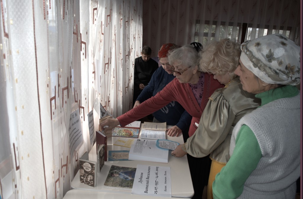 Вниманию присутствующих была представлена выставка книг из фонда детской библиотеки № 19 Краснооктябрьского района, посвященная празднику Покрова Пресвятой Богородицы и выставка «Памяти поэтов – станичников».