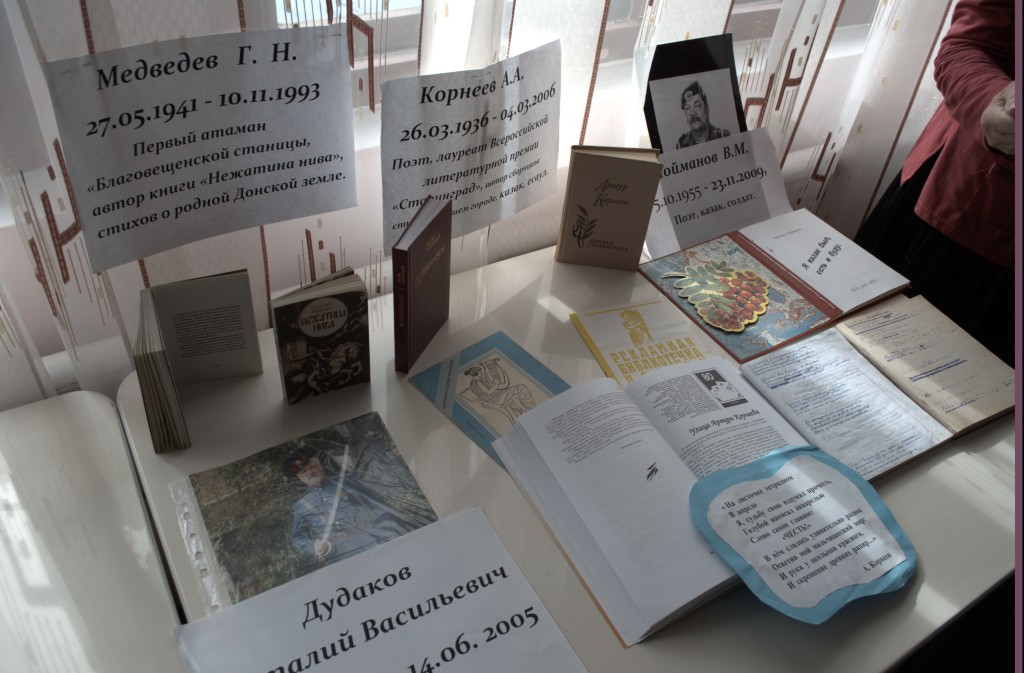 Гости получили возможность познакомиться с творчеством станичников. Казаки вспомнили творчество первого атамана Благовещенской станицы Медведева Геннадия Никитовича, который перевел на современный русский язык «Слово о полку Игореве», не побоявшись соперничества с другими знаменитыми переводами, так как чувствовал потребность сказать о своем понимании прошлого Руси.