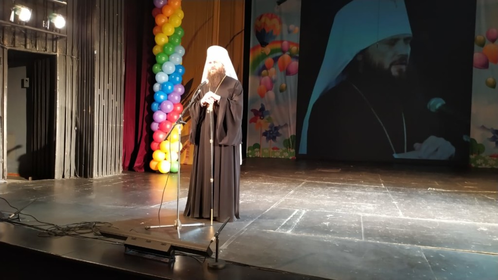 Владыка Феодор со сцены поприветствовал собравшихся и поздравил с этим радостным днем.