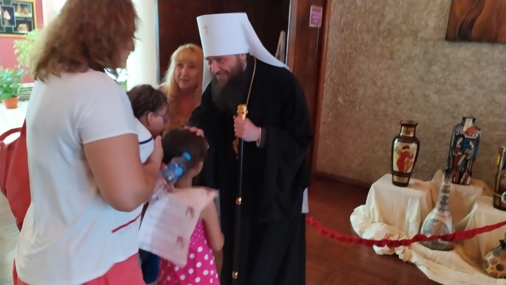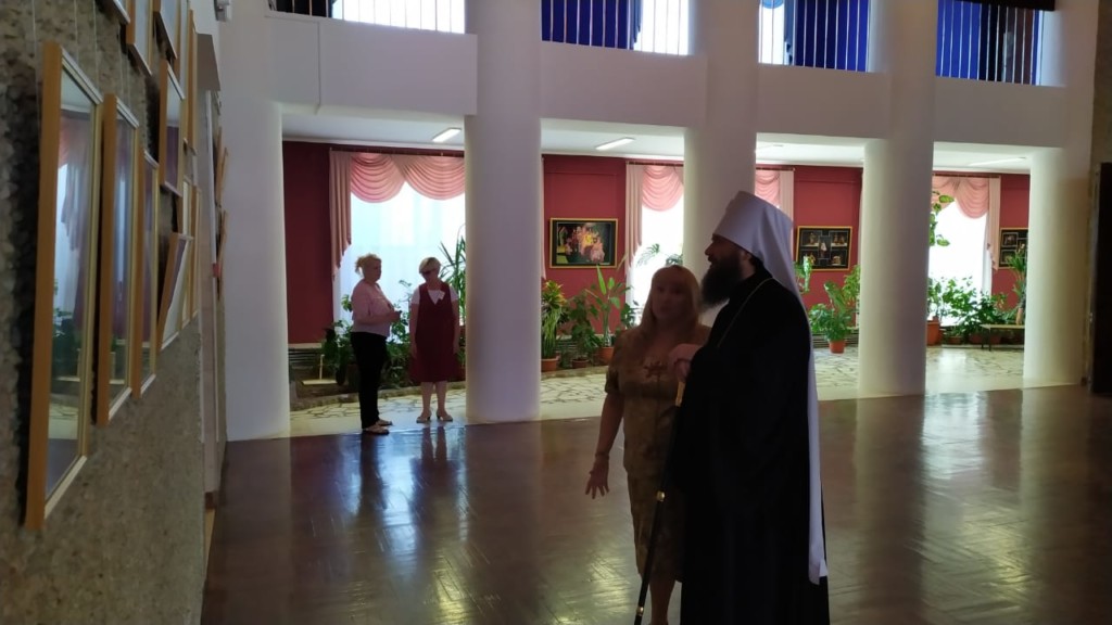 Митрополит Феодор ознакомился с конкурсными работами, выставленными в фойе, благословил гостей праздника и побеседовал с его организаторами.