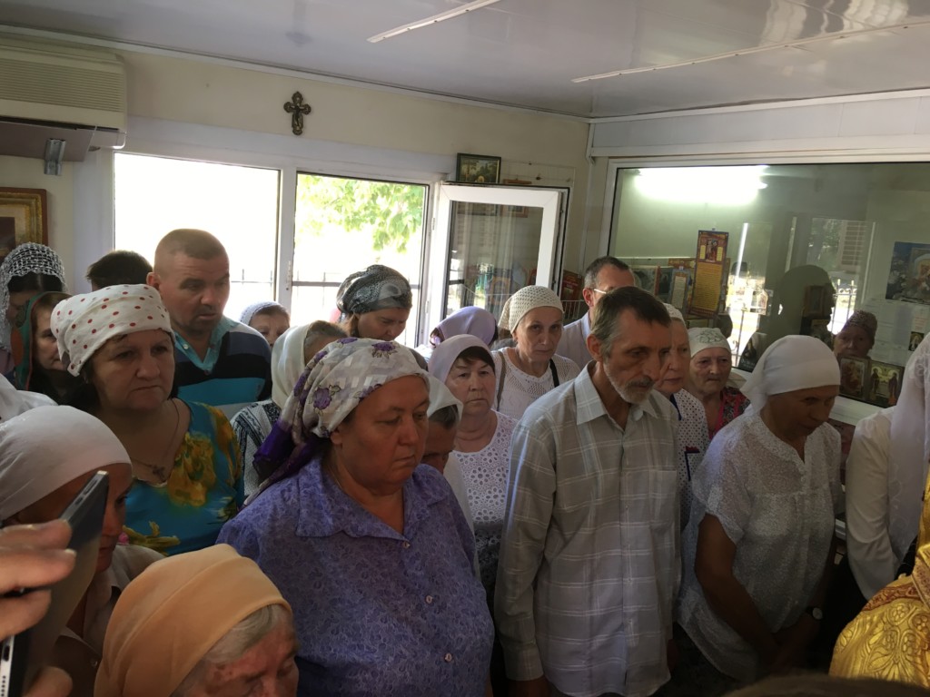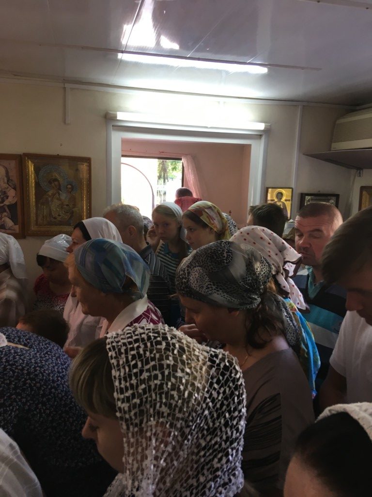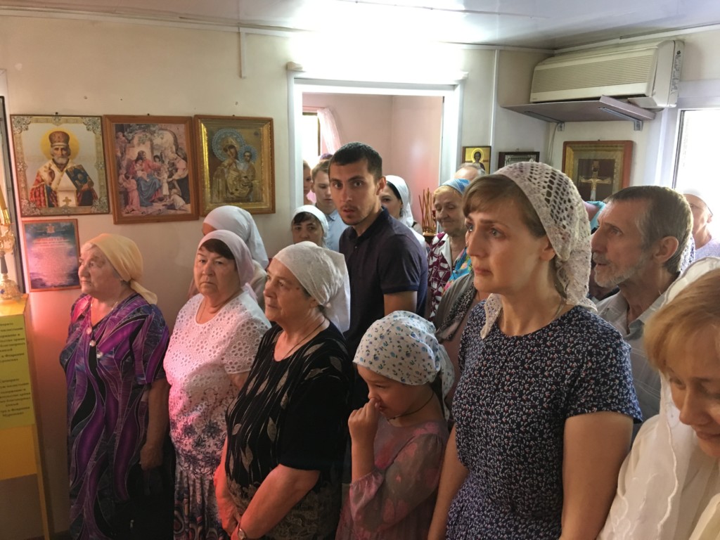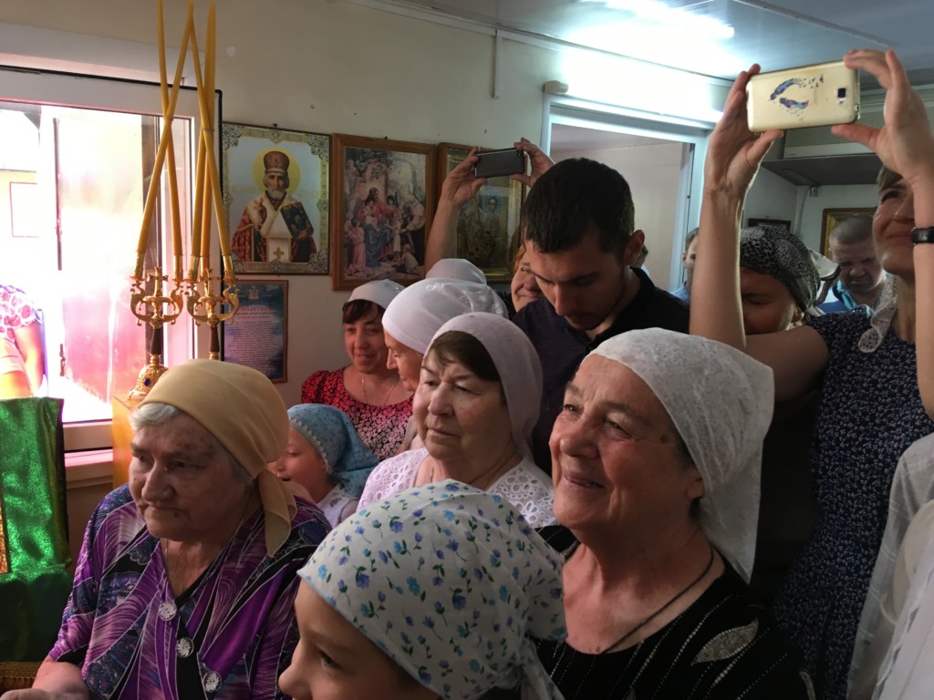 Эта крохотная церковь находится в приспособленном помещении, площадь которой едва ли превышает комнату среднего размера. Бросается в глаза, что несмотря на скромность Божьего дома, приход здесь крепкий и дружный. Люди молились не только в самой церкви, но и стоя под открытым небом вокруг церкви.