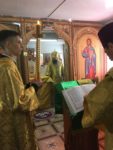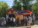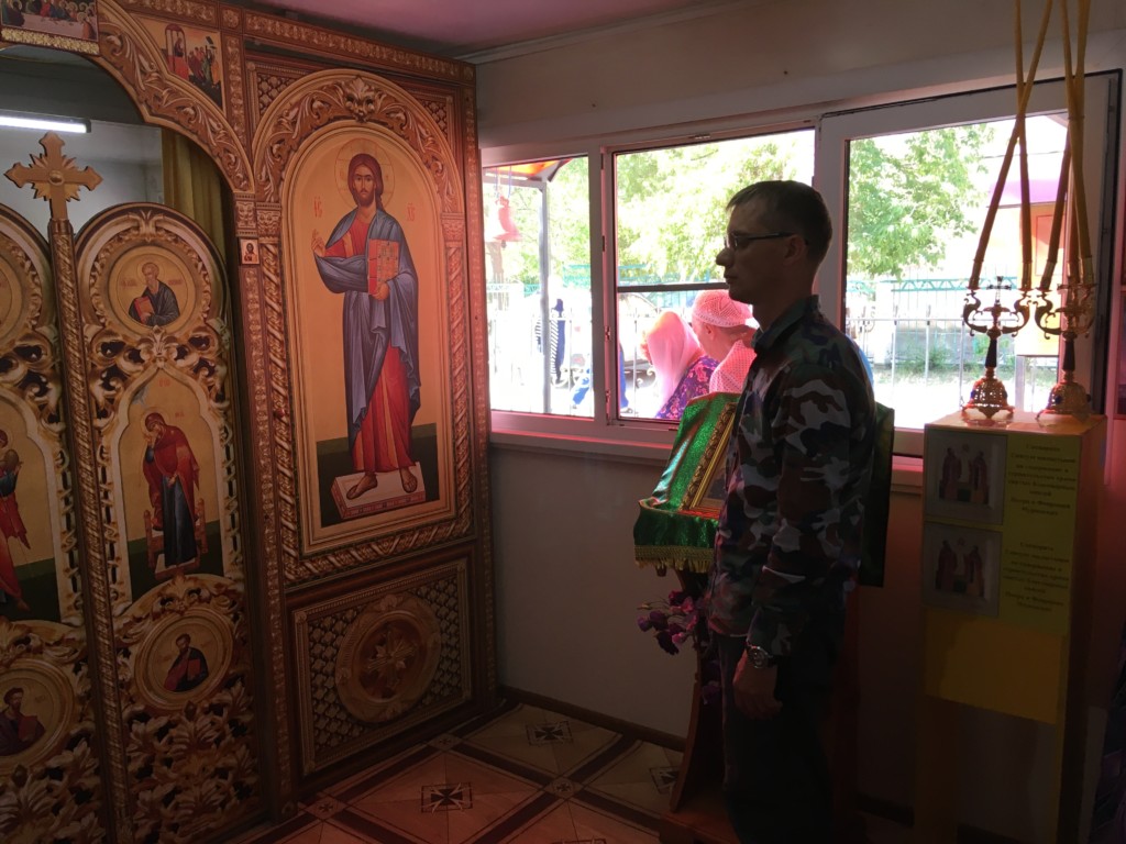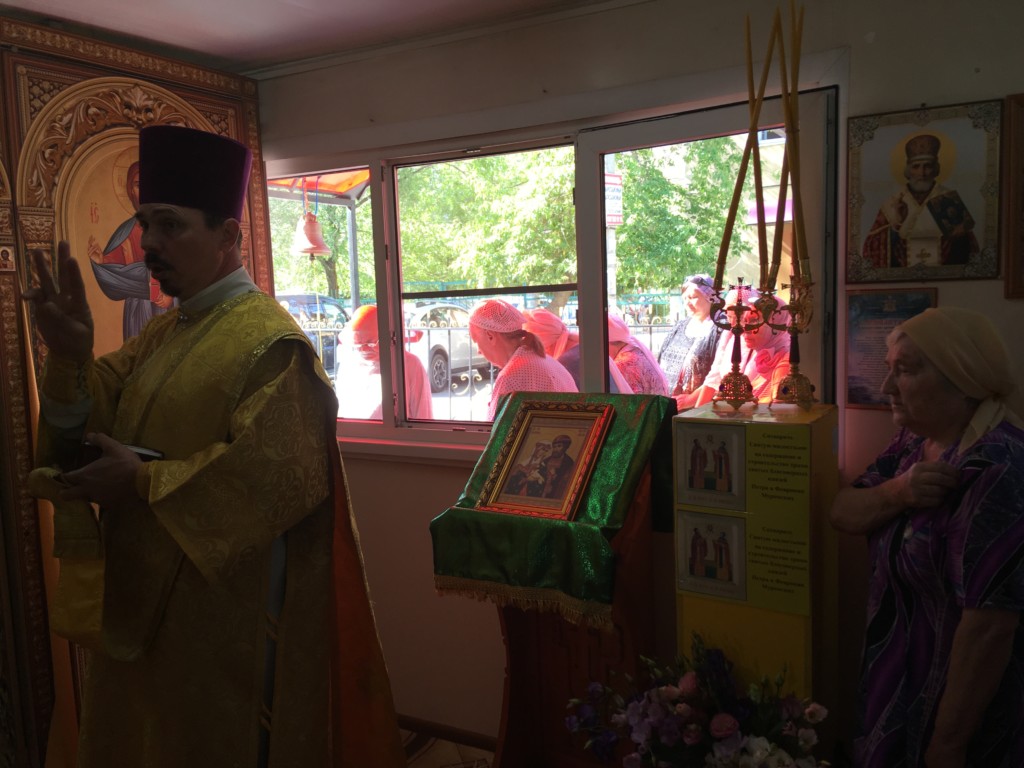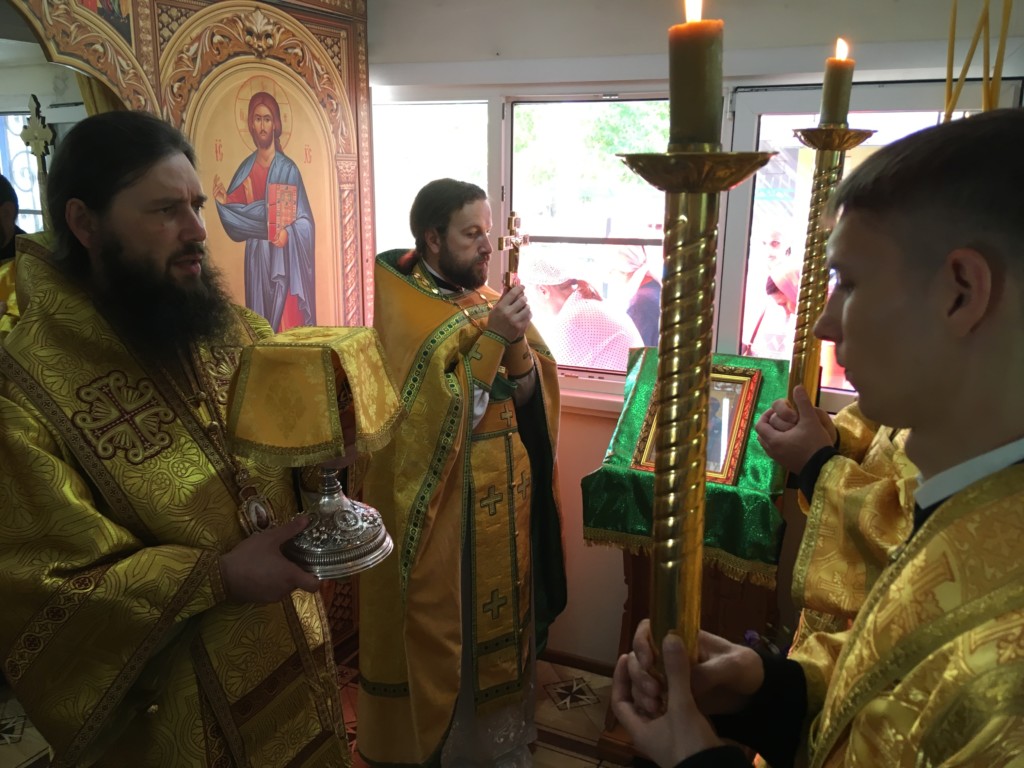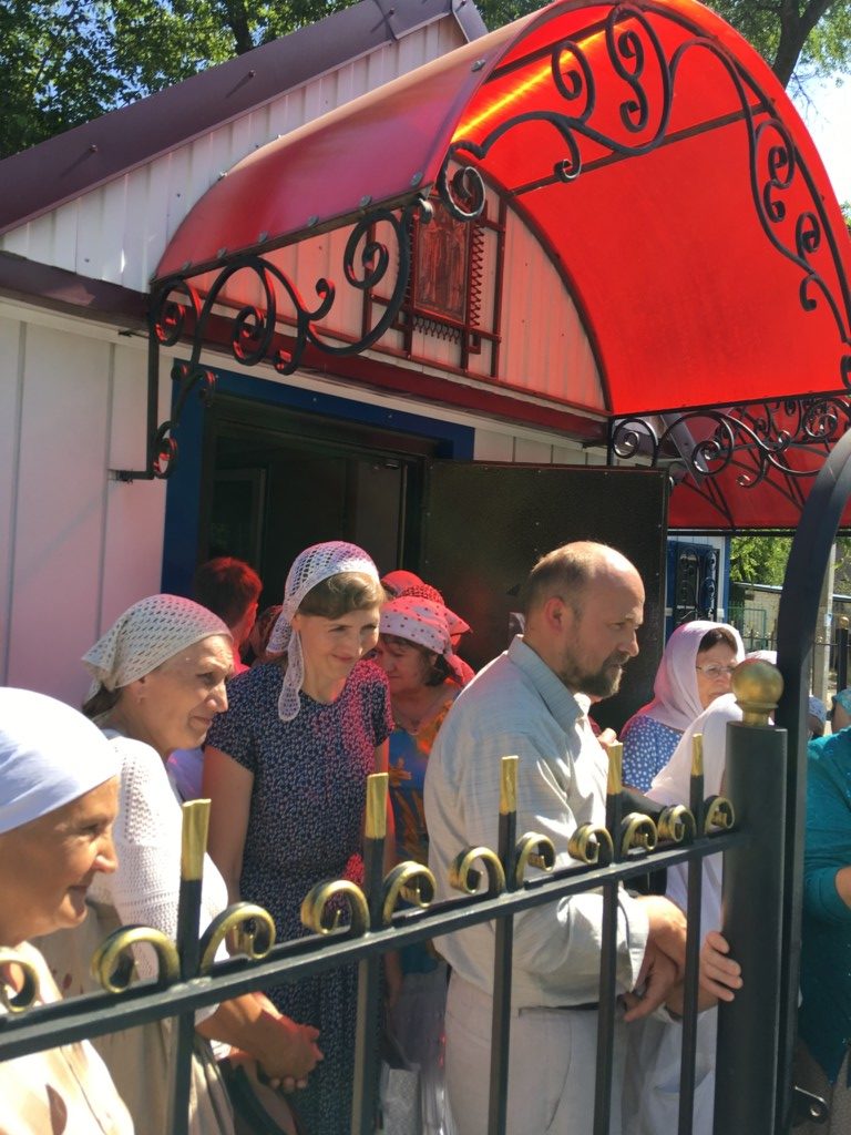 Эта крохотная церковь находится в приспособленном помещении, площадь которой едва ли превышает комнату среднего размера. Бросается в глаза, что несмотря на скромность Божьего дома, приход здесь крепкий и дружный. Люди молились не только в самой церкви, но и стоя под открытым небом вокруг церкви.