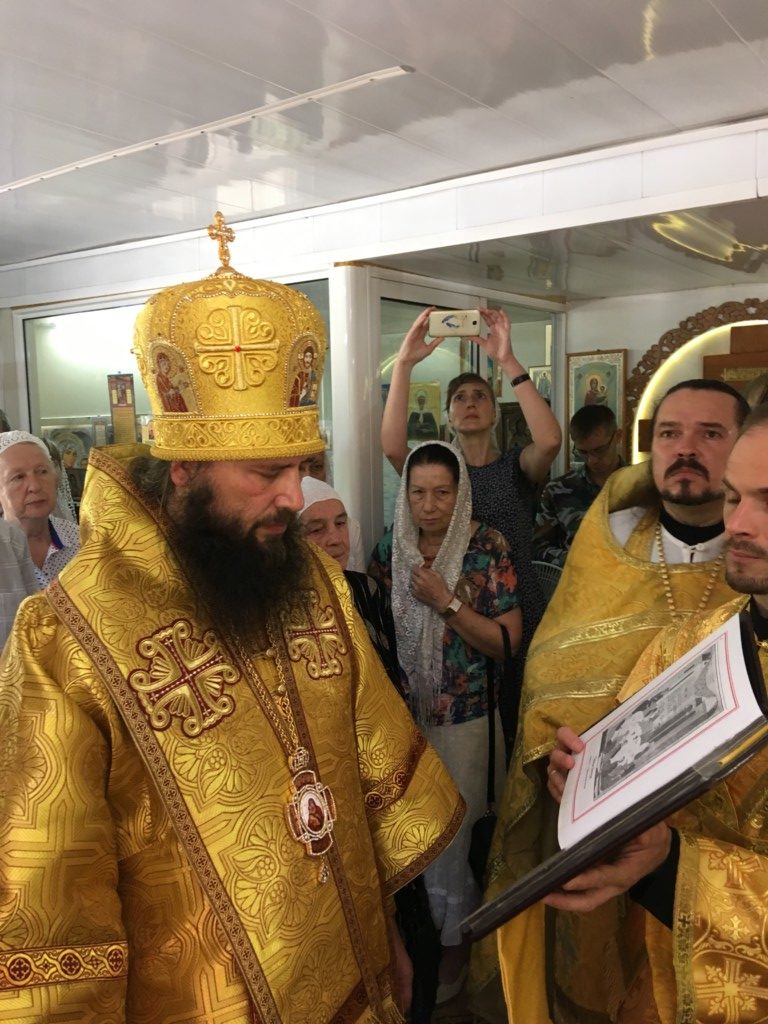 Владыка Феодор поздравил всех присутствующих с престольным праздником в честь благоверных князей Петра и Февронии Муромских чудотворцев. Он напомнил историю жизни святых супругов и пожелал всем жить в чистоте: