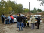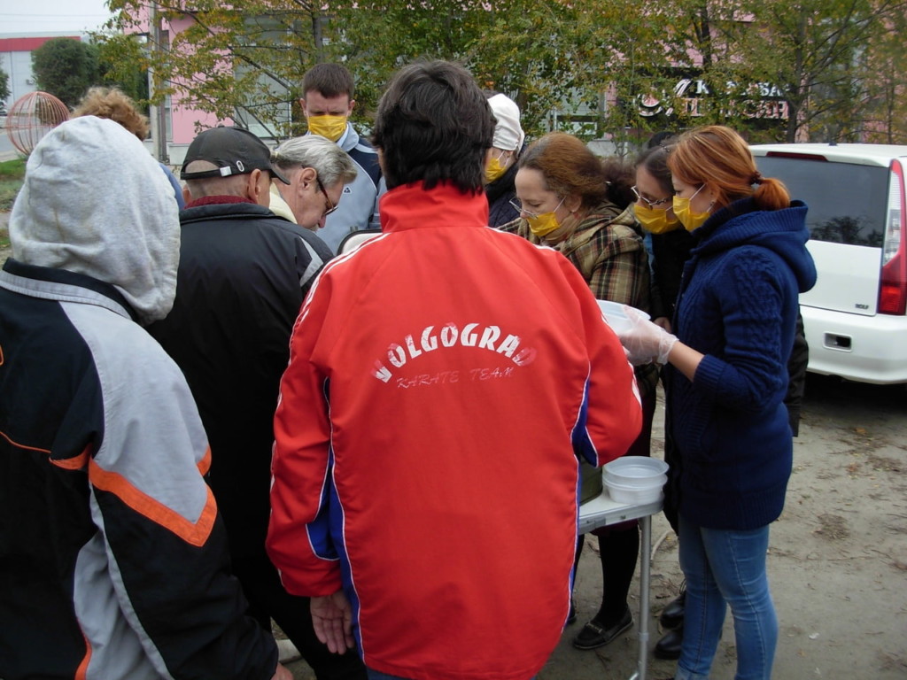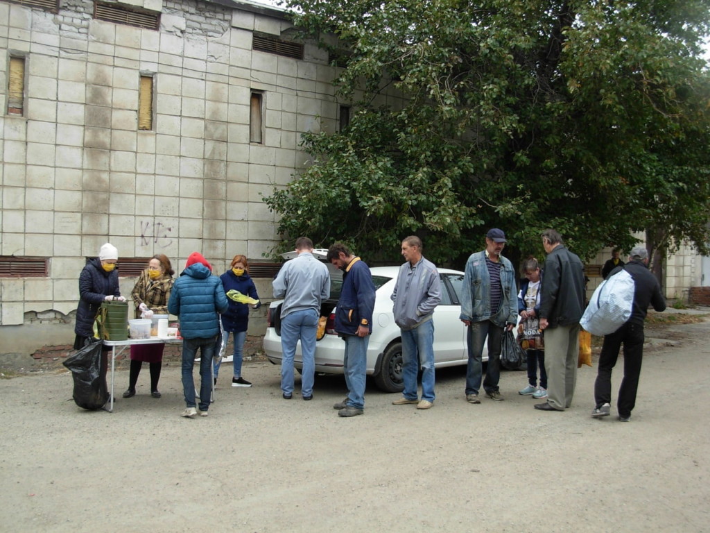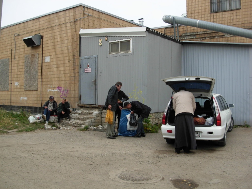 — В бой идут одни старики под руководством отца Дионисия: юбилейный пятидесятый выезд был без новых лиц. Правда, только с нашей стороны — среди гостей новеньких опять было несколько человек. На «Юности» пришедшие обедать повели себя необычно: никаких разборок по типу «вас тут не стояло» не было. Да и очереди сначала не было, ждали нас небольшими группами. Все были в благостном настроении, я впервые увидела, как улыбается Михаил). Накормили чуть больше тридцати человек. Еду привезли на двух машинах, очень много. Один из обедавших сказал, что наконец-то наелся. Для него это было настолько значимое событие, что он сообщал о нем всем проходившим мимо. Опять было три супа (горячий и два холодных). На десерт раздавали яблоки праздничного красного цвета. Потом раздали одежду (два огромных мешка).