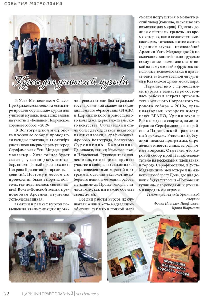 Это и многое-многое другое ждет читателей на страницах октябрьского выпуска «Царицына православного». А редакция журнала приглашает к сотрудничеству всех неравнодушных творческих прихожан нашей епархии. Мы с радостью ждем ваших рассказов, заметок, фотографий, вопросов, объявлений – словом, всего, что может послужить делу созидания нашей веры и Церкви.