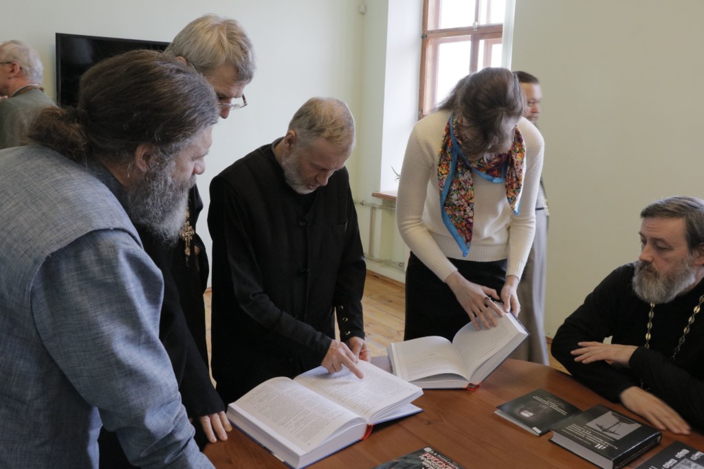 Мероприятие открыла заведующая библиотекой Марина Шелест. Она представила участникам встречи книги с выставки «Путь покаяния» о новомучениках и исповедниках российских ХХ века, составленные игуменом Дамаскином (Орловским), документы о патриархе Тихоне, учебную и художественную литературу по данной теме.