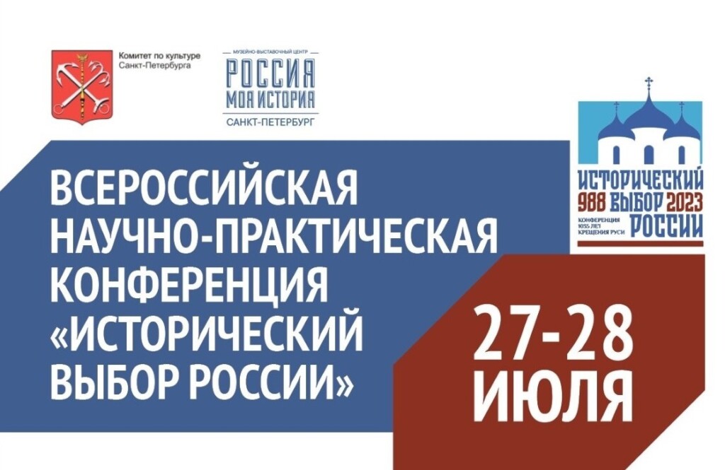 Всероссийская научно-практическая конференция «Исторический выбор России» приурочена к 1035-летию Крещения Руси и к 80-летию второго восстановления патриаршества в XX в. подготовлена Музейно-выставочным центром «Россия — Моя история» в Санкт-Петербурге. Она пройдет 27 июля в формате он-лайн трансляции.
