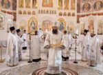 Его Высокопреосвященству сослужили митрофорный протоиерей Дмитрий Кочергин, протоиерей Александр Сазонов, иерей Роман Блинков, иерей Алексей Сапожников.