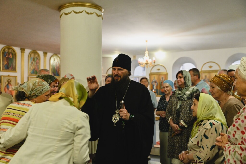 «Со святым вечером, дорогие отцы, братья и сестры, с кануном воскресного дня в преддверии праздника Успения Пресвятой Богородицы. Благодарю за совместные горячие молитвы, благодарю отца настоятеля за внимание к храму, который, как мне кажется, к каждому моему приезду становится всё светлее, лучше. Он пока еще не наполнен молящимися – это дело не скорое. Пахоты на ниве Христовой много.