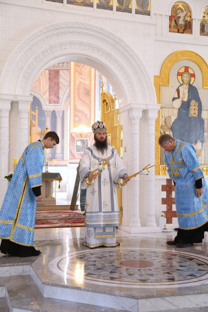 Богослужебные песнопения исполнил архиерейский хор под управлением регента Марии Зимовец.