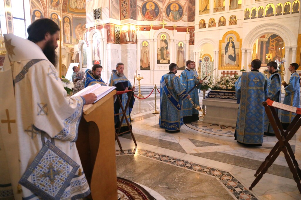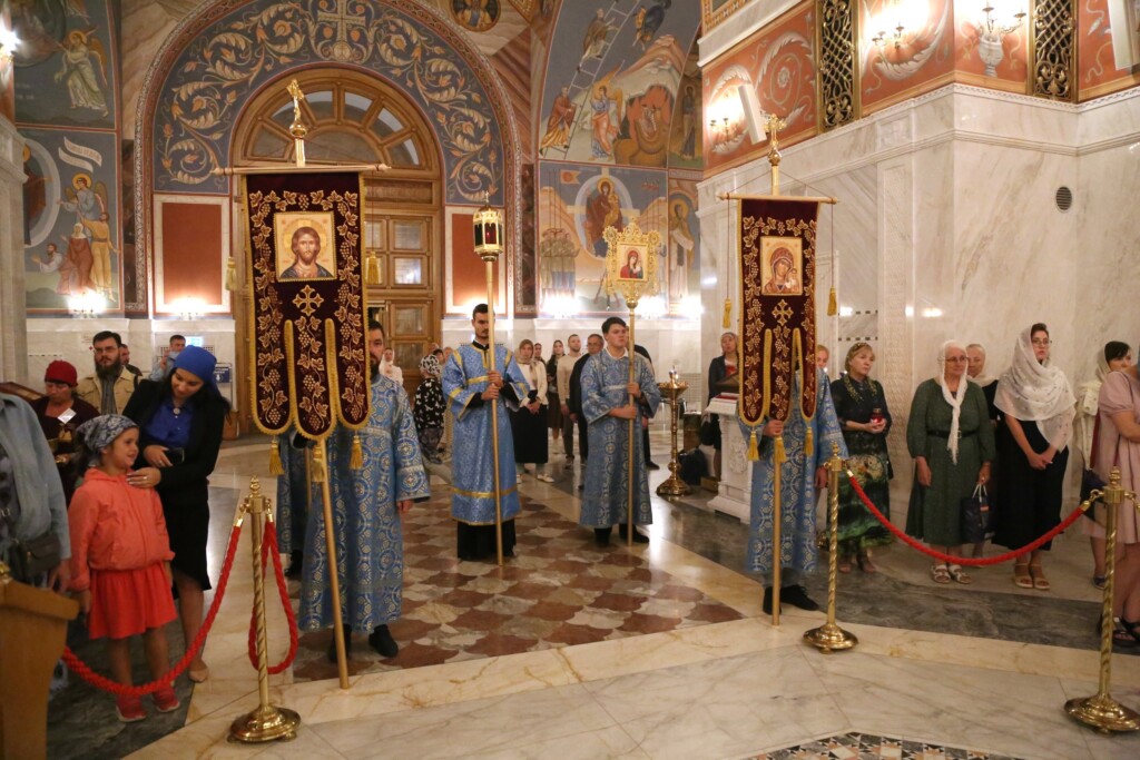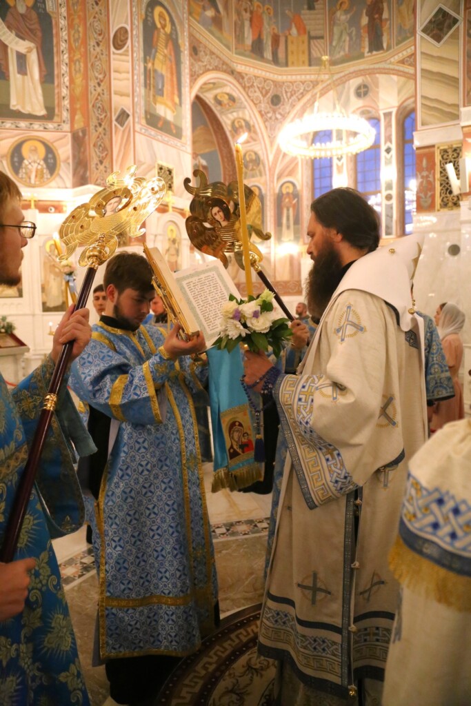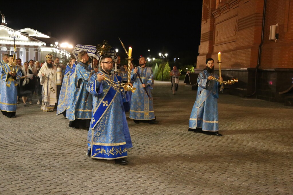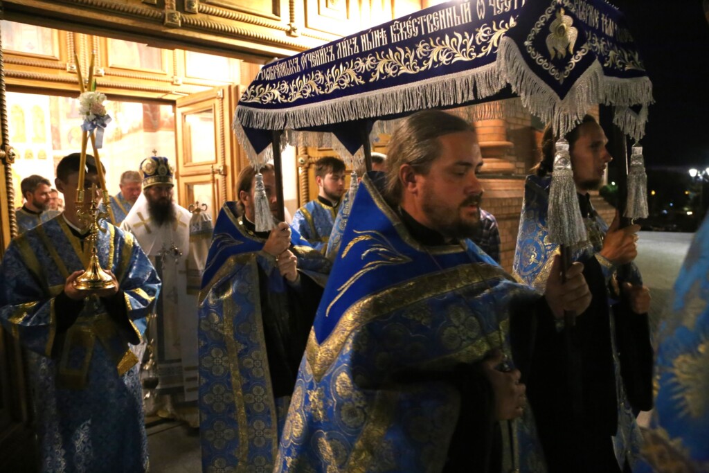 Вечером 29 августа 2023 года в кафедральном соборе святого благоверного князя Александра Невского города Волгограда митрополит Волгоградский и Камышинский Феодор совершил всенощное бдение с чином Погребения Пресвятой Богородицы.