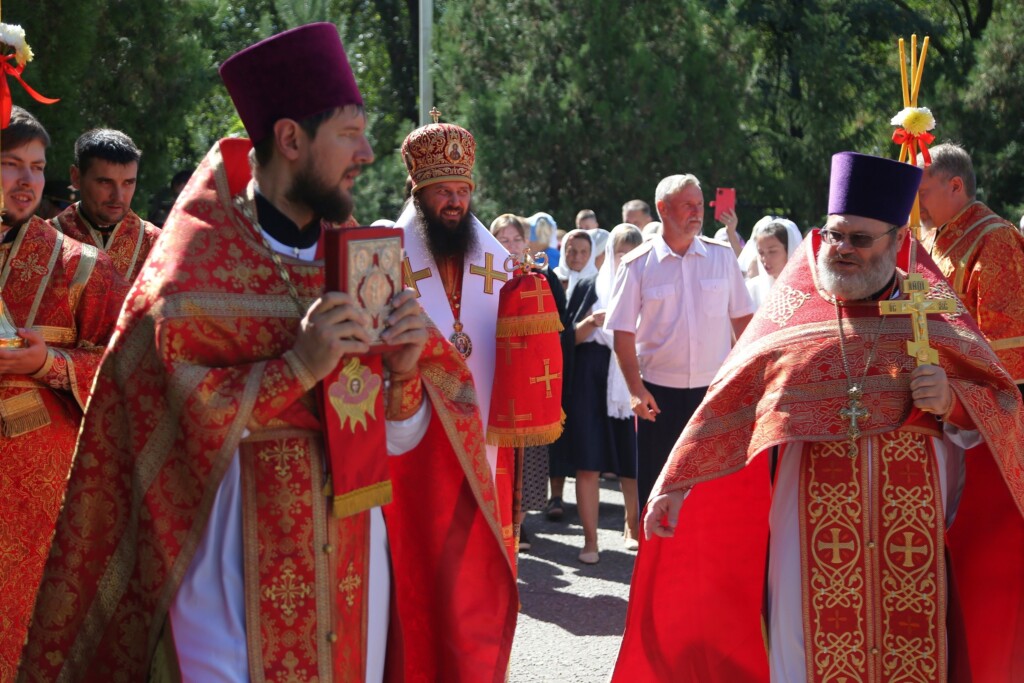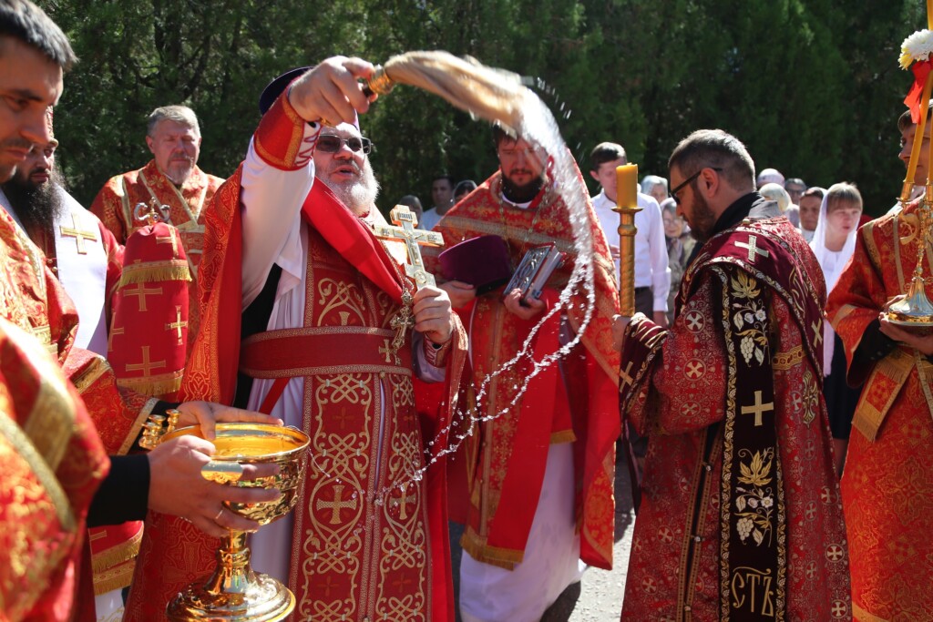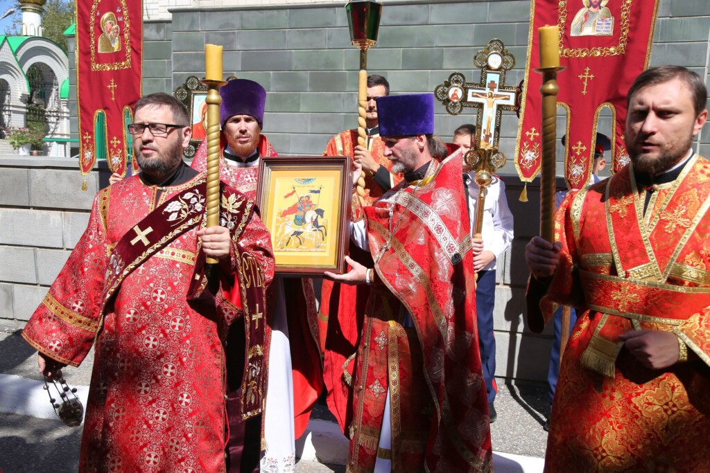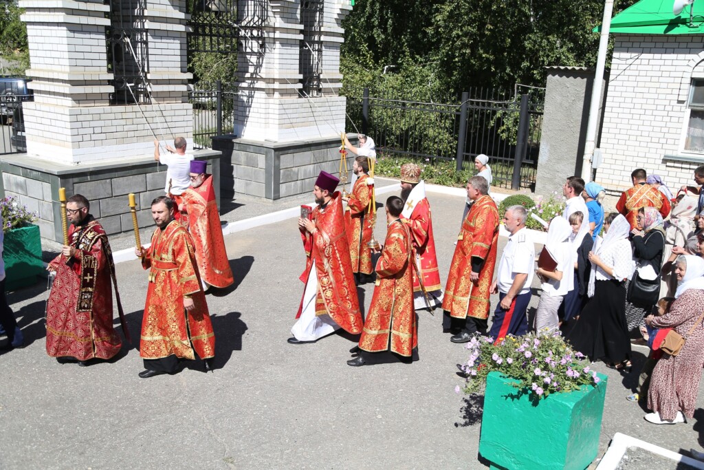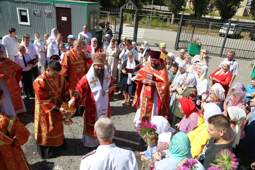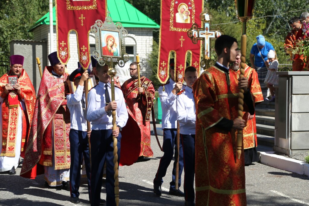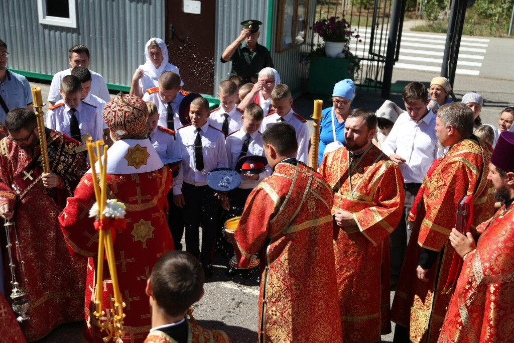 Духовенство, кадеты и прихожане вместе со своим правящим архиереем совершили Крестный ход вокруг храма.
