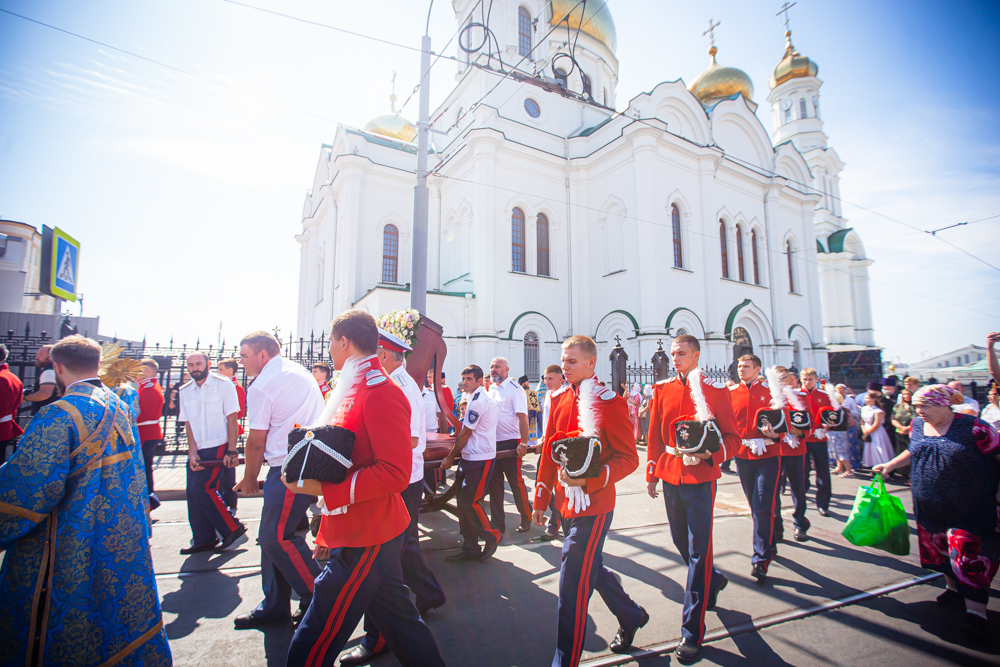По окончании богослужения был совершен крестный ход с Донским образом Пресвятой Богородицы на Соборную площадь к памятнику святителя Димитрия, митрополита Ростовского.