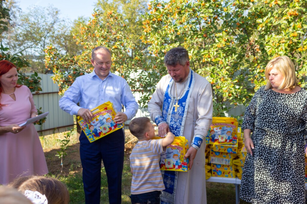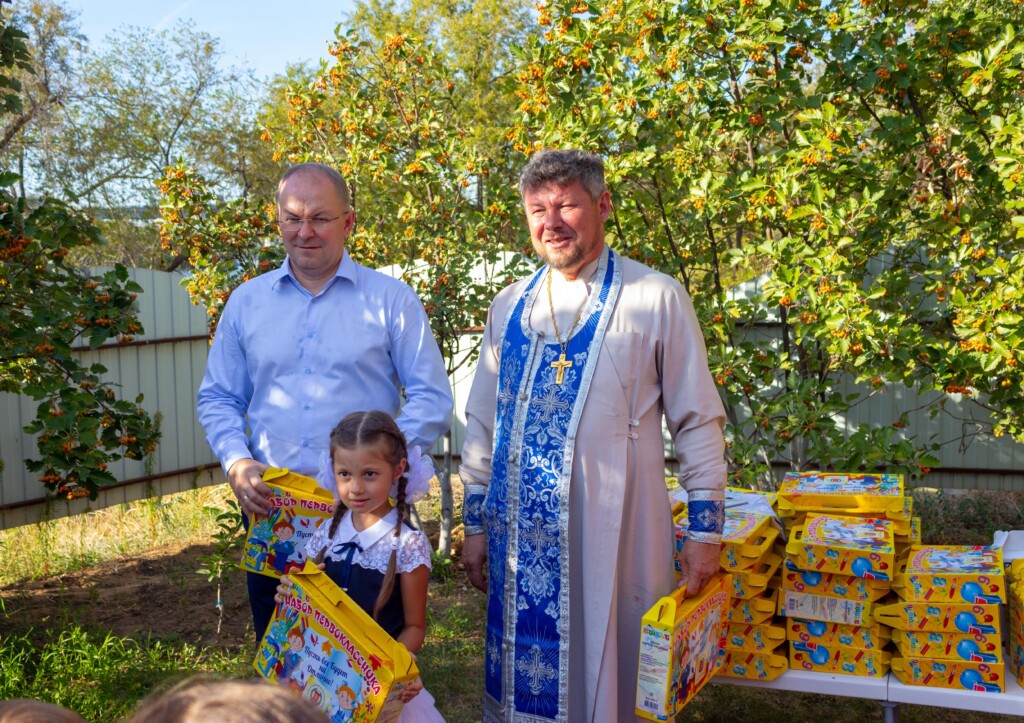 От прихода были вручены подарочные наборы воспитанникам Центра социально-трудовой реабилитации инвалидов «Тёплый дом» ВООО фонд » Дети в беде» и детям с ограниченными возможностями здоровья из детского сада №279 Красноармейского района Волгограда, которые в этом году пошли в школу.