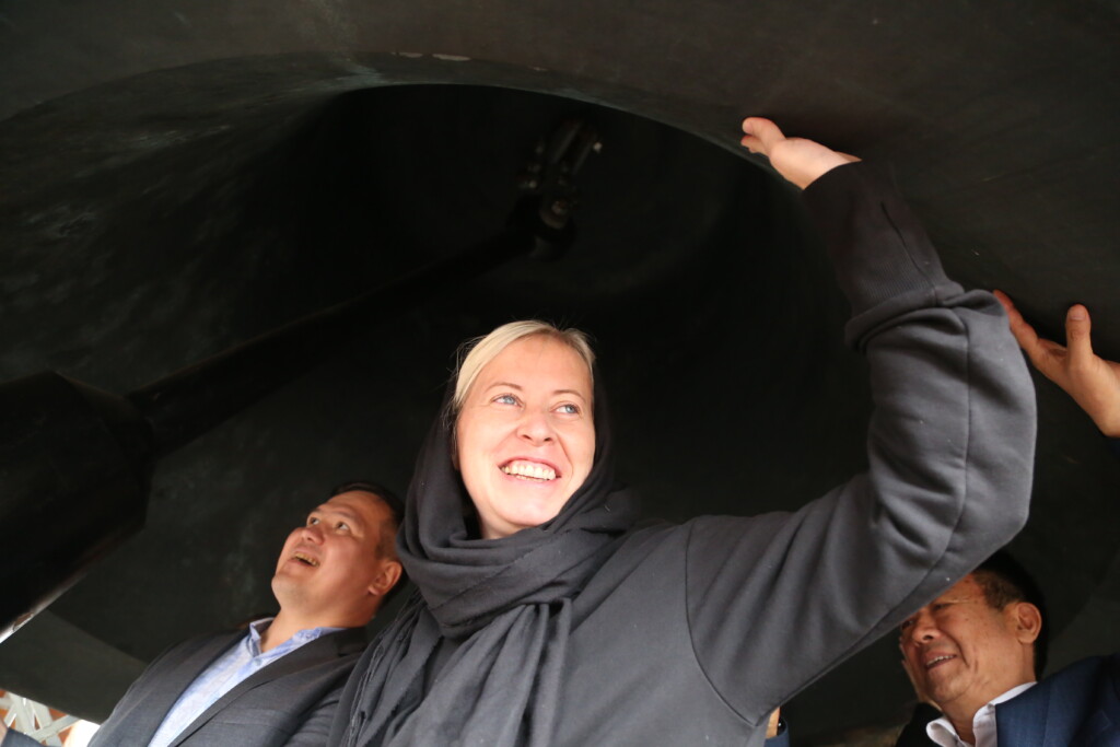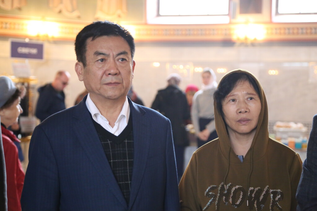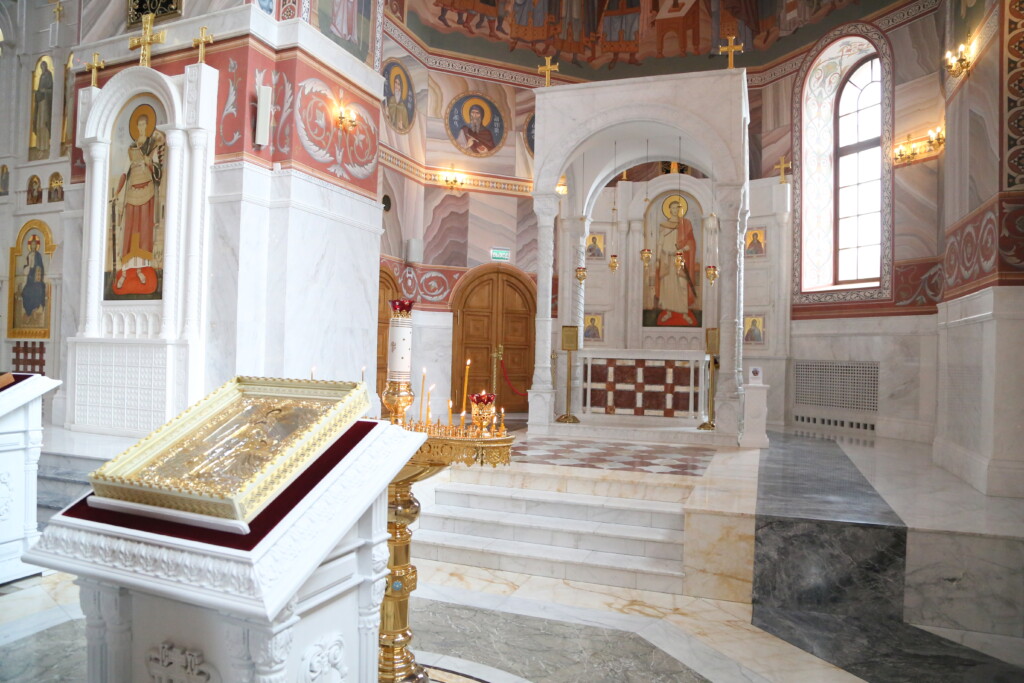 Для участников масштабных мероприятий иерей Роман Блинков провел экскурсию по собору, рассказал о святынях, которые находятся здесь. Гости задавали вопросы, касающиеся личности святого князя и истории храма. Затем желающие поднялись на колокольню.