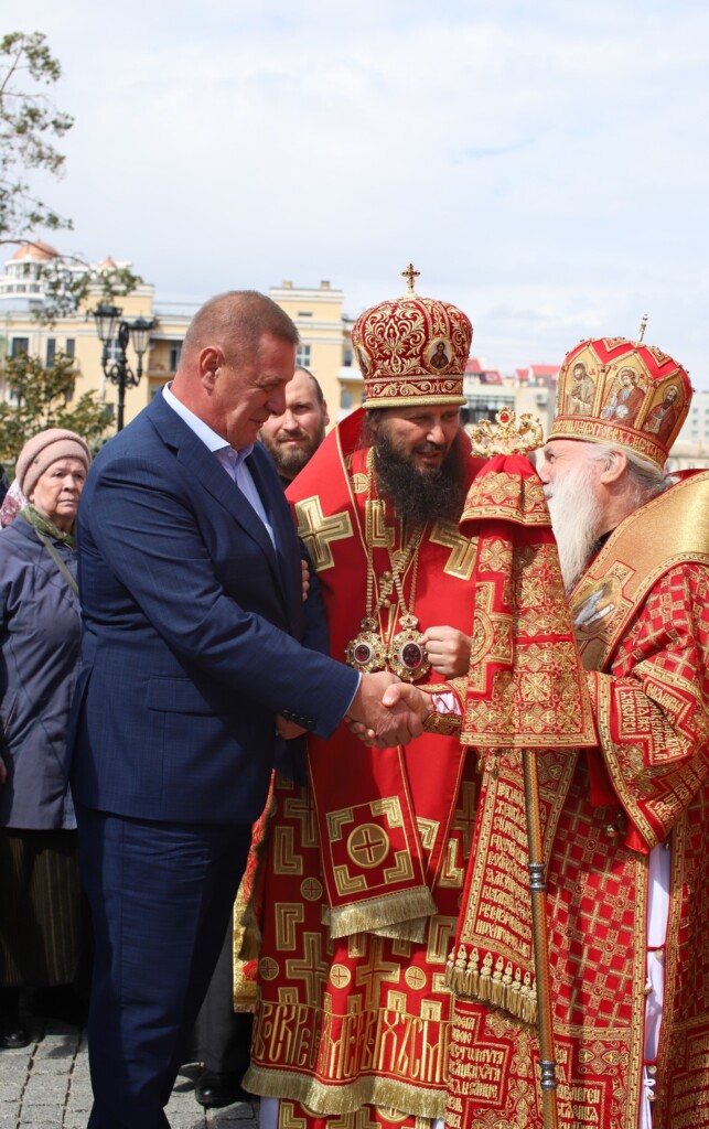 В сегодняшний праздник — день памяти святого благоверного великого князя Александра Невского — мы благодарим Святейшего Патриарха Кирилла, который в те непростые времена нашёл возможность и силы приехать сюда и освятить этот великолепный собор, который под руководством нашего губернатора строил весь мир. Мы сегодня приобщаемся не только к трудам Александра Невского, но и к его благодатным дарам. Я желаю, дорогие владыки, дорогие братья и сестры, всем нам избытка благодати Святого Духа не только в этот праздник, но во всей нашей жизни, которая помогает нам совершать своё христианское служение в месте, куда мы поставлены Промыслом Божиим.