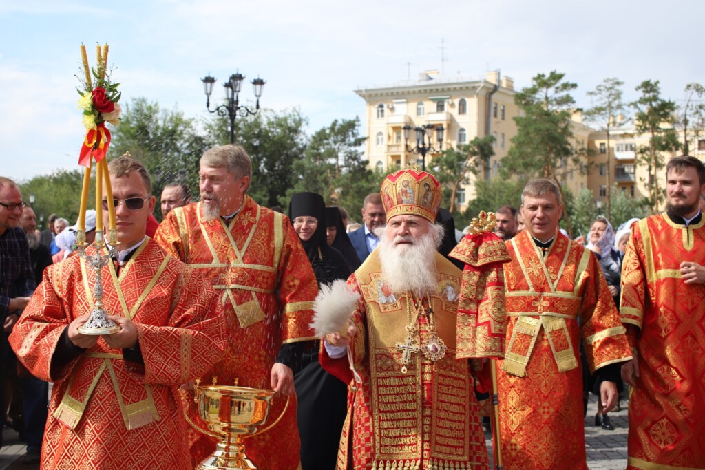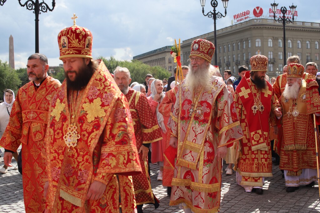 Волгоградцы и гости нашего города вместе с архипастырями совершили праздничный крестный ход вокруг собора.
