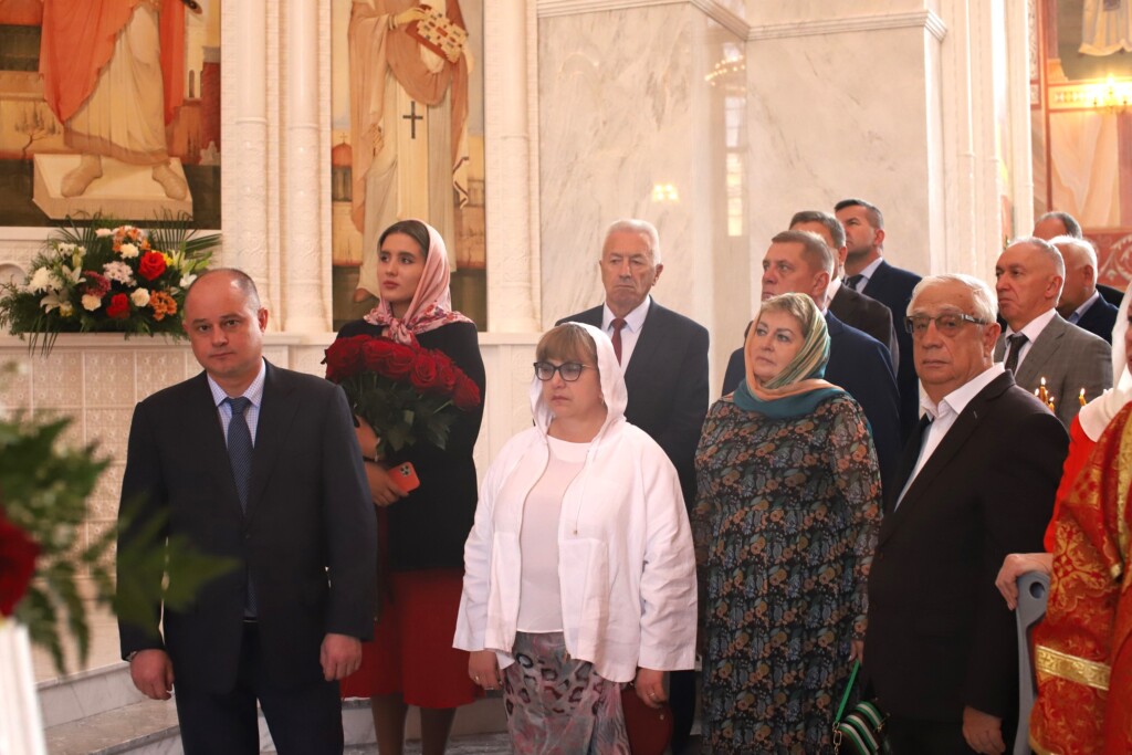 За богослужением молилась настоятельница Свято-Вознесенского женского монастыря игумения Анна (Ерофеева) с сестрами обители, монашествующие, прибывшие из других обителей, представители власти, казаки Войскового казачьего общества «Всевеликое Войско Донское», сотрудники МЧС России по Волгоградской области, сестры милосердия.