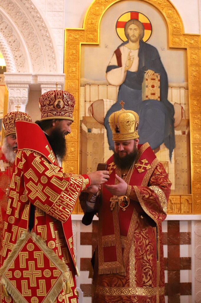 «Ваше Высокопреосвященство, дорогой митрополит Феодор, наш гостеприимный хозяин, Ваши Преосвященства, дорогие Владыки, дорогие отцы, братья и сестры, представители государственной власти Волгоградской области! Всех Вас от лица Его Святейшества, Святейшего Патриарха Московского и всея Руси Кирилла поздравляю с престольным праздником этого величественного собора в честь святого благоверного великого подвижника нашей земли русской Александра Невского. Мы благодарны Его Святейшеству за то, что он проявил особое мужество: на Руси еще бушевала эпидемия, но он в знак особой любовь к вам и всем жителям Волгоградской области и города Волгограда, приехал сюда, чтобы благословить всех и освятить этот храм в честь благоверного князя Александра Невского. Святейший Патриарх очень ценит и любит этого святого, потому что он — особый человек для нашей русской земли, хранитель веры православной, а вера — есть тот стержень, который укрепляет мощь и силу нашей русской державы.