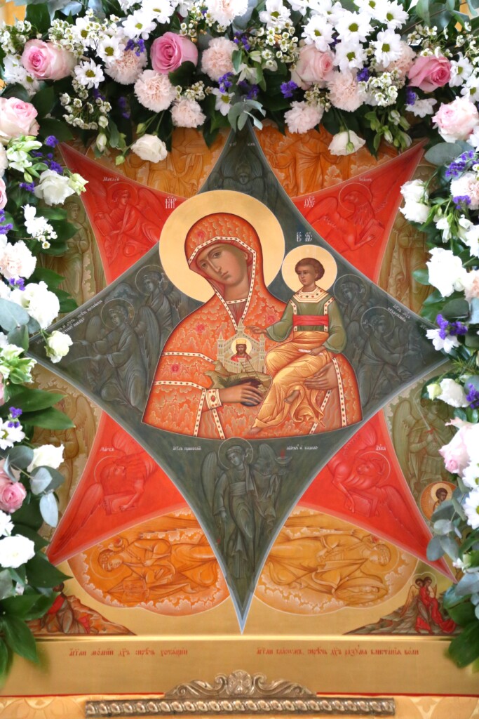 Неопалимая Купина – это видение, которое было открыто пророку Моисею: куст был объят пламенем, но это пламя никакого вреда кусту не приносило, он оставался неопалимым. Святые отцы и пророки видели в этом символическом Божественном откровении прообраз Божией Матери, Которая по-человечески имела ветхое естество нашей плоти, но смогла вместить в Себя в