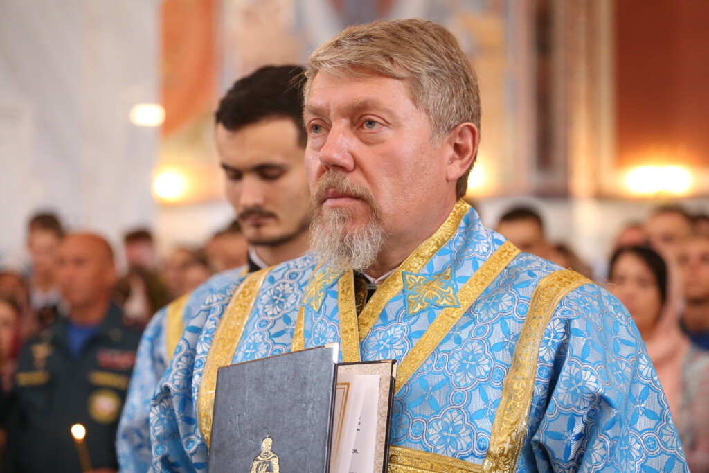 Я бы хотел сказать слова благодарности Николаю Сергеевичу и всем вам, дорогие сотрудники, за священный дар нашему собору – прекрасную икону Богородицы «Неопалимая Купина», которая уже украшает наш собор. Самое главное, что к этому образу Царицы Небесной могут приходить не только те, кто носят погоны, как вы, кто просит помощи в своей профессиональной деятельности, но и простые соотечественники – волгоградцы и гости города и области, и просить, чтобы Она утолила, угасила греховный страстный пламень души и зажгла в сердцах пламень духовный, а тот огонь, который разрушает наши дома, наши города, наши народы тоже угасила.