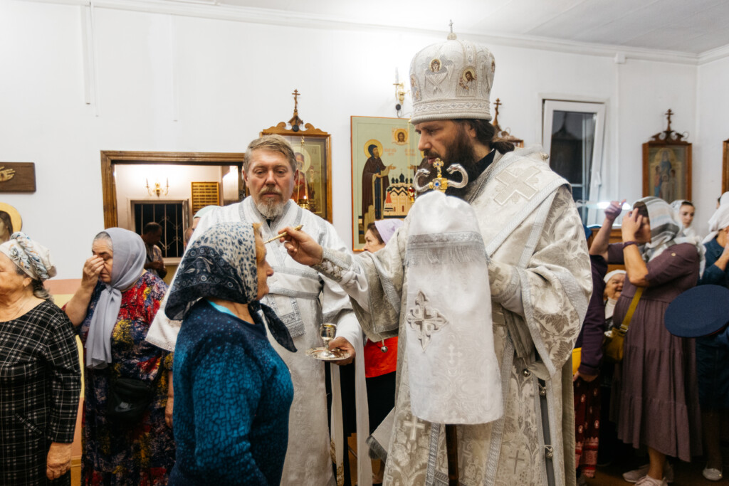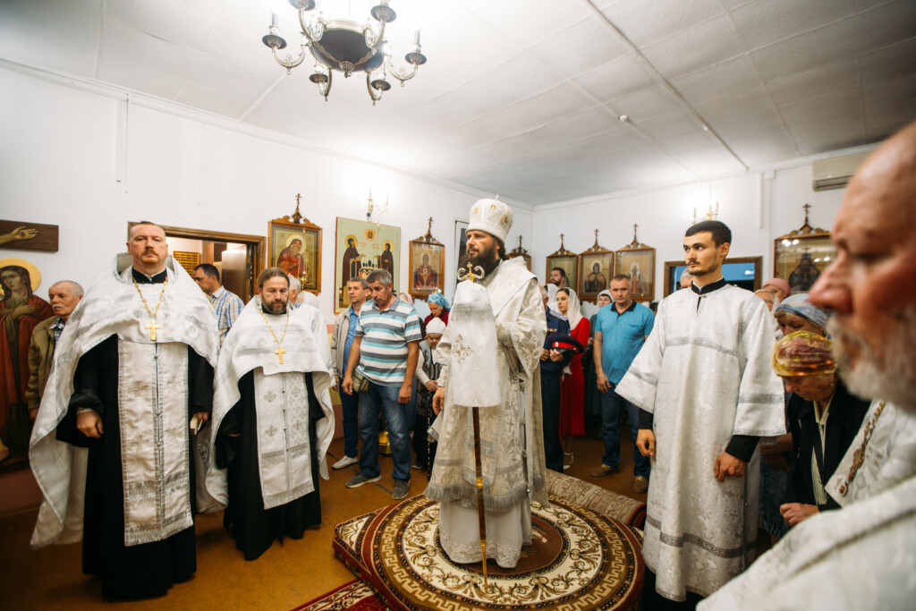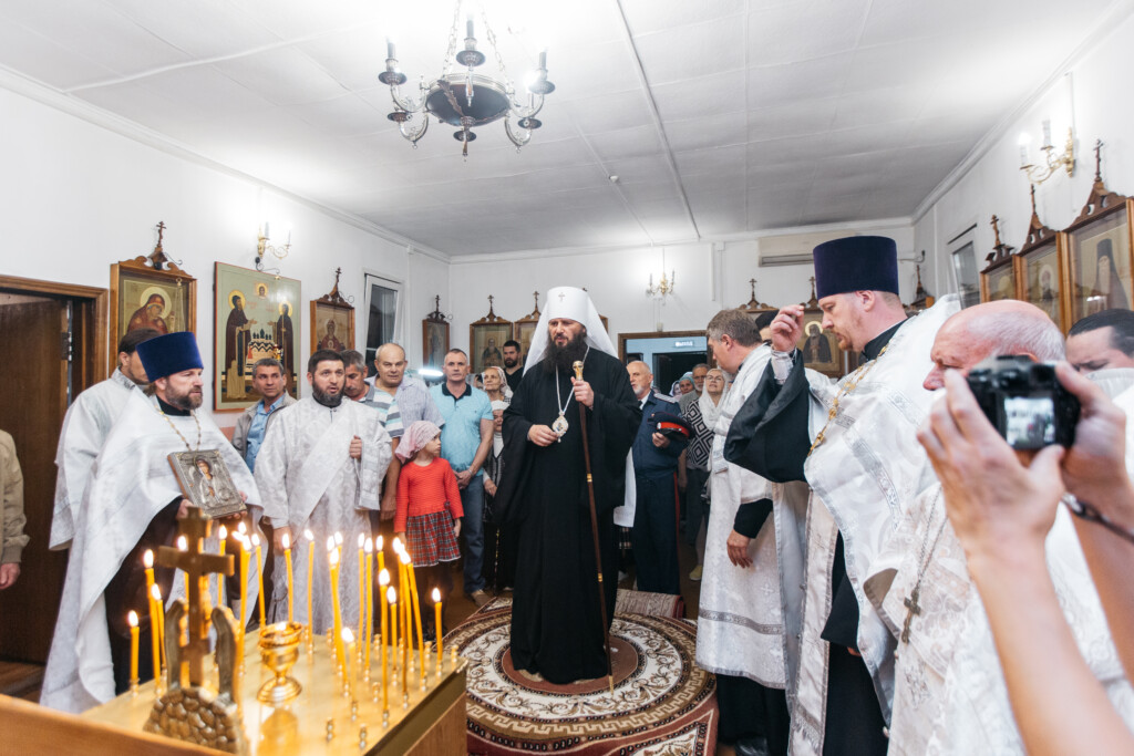 Его Высокопреосвященству сослужили: благочинный Северного и Сталинградского округов, настоятель храма иерей Олег Иващенко, протоиерей Виталий Куледин, иерей Алексей Старостин, иерей Георгий Глазков.
