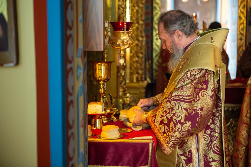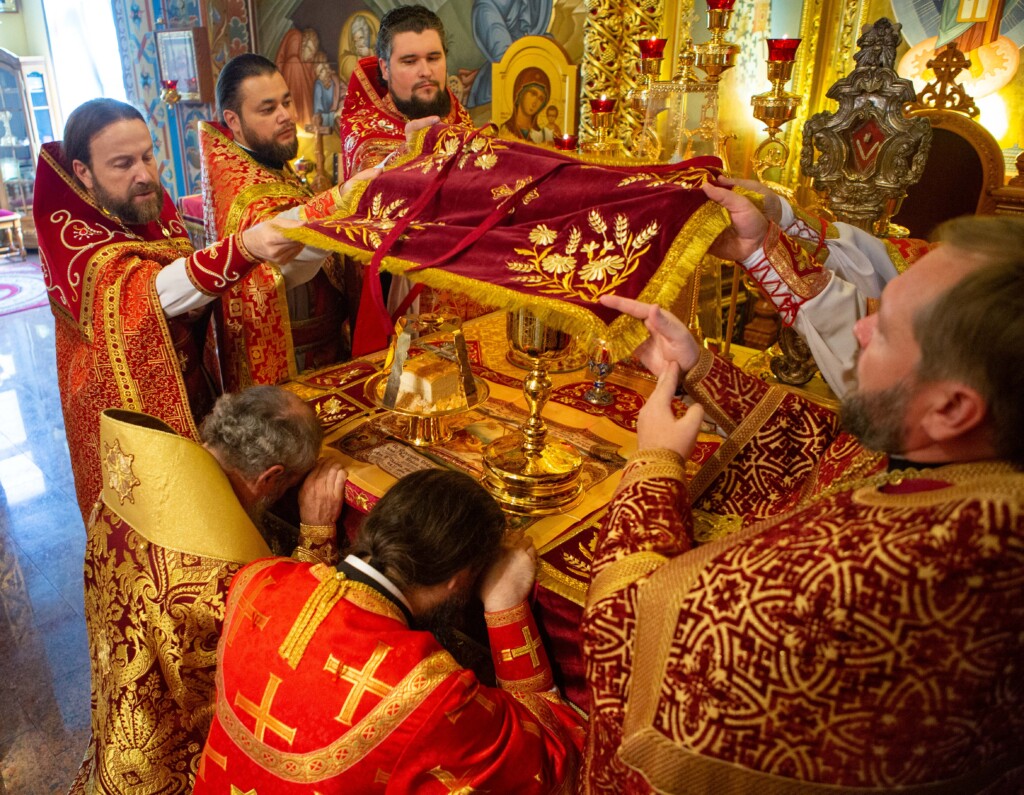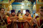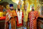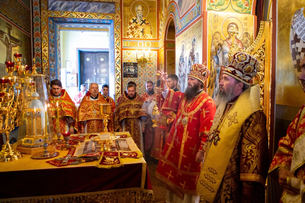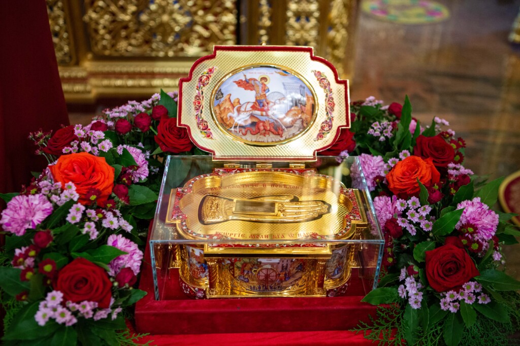 Выскокопреосвященный владыка внес ковчег в храм под пение тропаря святому Георгию Победоносцу.