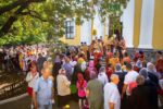 В завершение Литургии состоялся крестный ход. Ковчег с мощами святого Георгия пронесли вокруг Казанского собора. Архипастыри благословили святыней и окропили святой водой верующих.