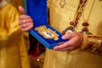 По окончании архиепископ Юстиниан поприветствовал митрополита Феодора, поблагодарил его за участие в торжествах в честь принесения мощей святого Георгия Победоносца и преподнес в дар панагию с изображением иконы «Явление Господа Иисуса Христа в Элисте»:
