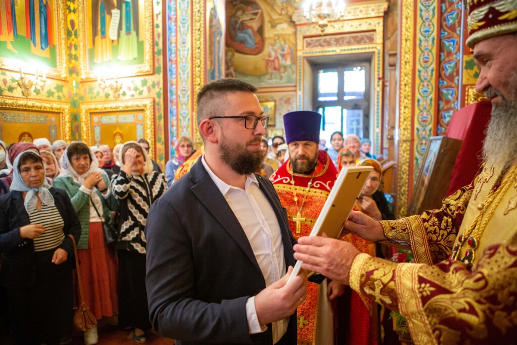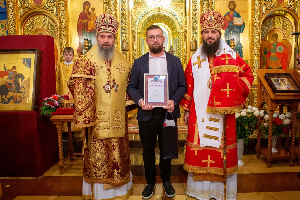 Высокопреосвященный Юстиниан также выразил благодарность Всемирному Русскому Народному Собору за содействие в принесение мощей святого Георгия в Калмыкию и наградил Епархиальной благодарностью представителя ВРНС Дениса Панько.