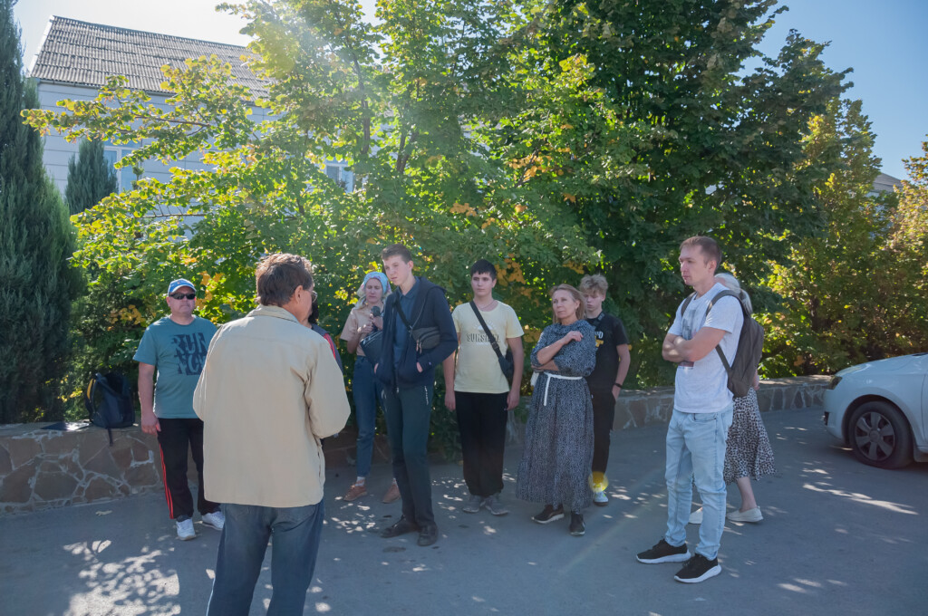 В следующем по маршруту храме преподобного Сергия Радонежского историк-краевед поведал его непростую историю. Он стоял в Царицыне на месте недалеко от нынешнего, был построен на деньги меценатов — купцов К.В. Воронина и А.А. Репникова, в память о погибшем сыне последнего Сереже.