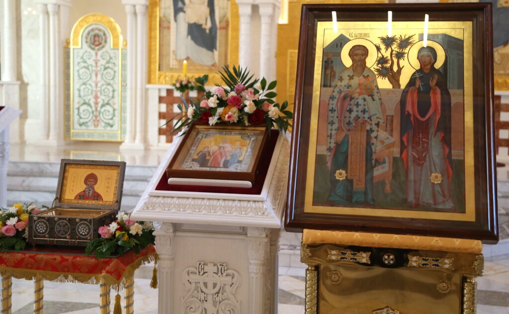 Сегодня, в канун дня памяти святых мучениц Веры, Надежды, Любови и матери их Софии, в Волгоградской епархии вновь встречали святыни. Милостью Божией из Ташкентской земли привезли икону священномученика Киприана и мученицы Иустины с частицами их святых мощей и ковчежец-стопу с частицей мощей святителя Спиридона Тримифунтского.