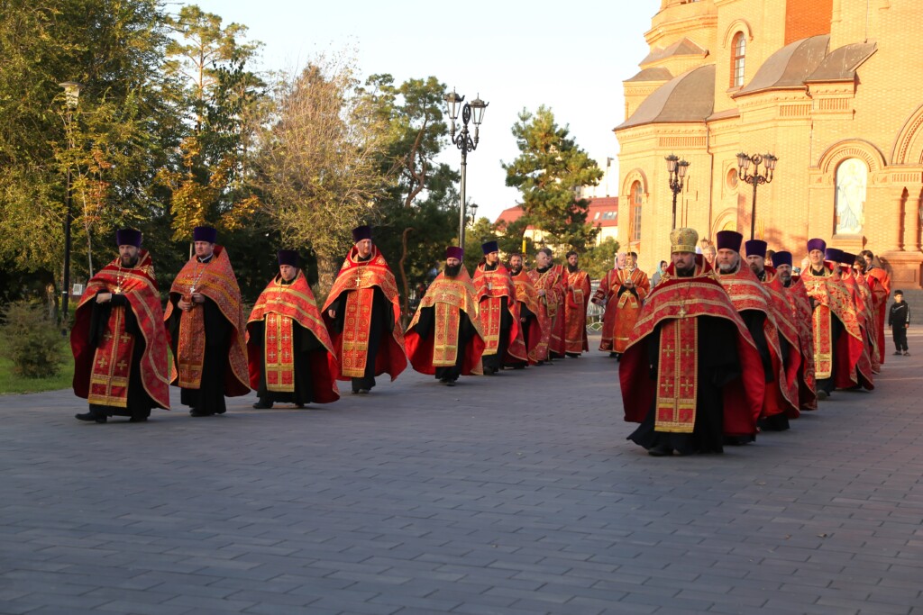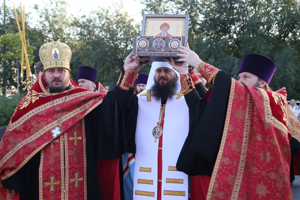 Торжественную встречу возглавил митрополит Волгоградский и Камышинский Феодор. Святыни установлены в центре собора и будут находиться здесь до 2 октября. Затем они будут принесены в другие храмы епархии.