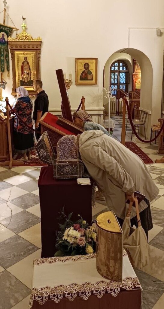 На следующий день, в канун празднования зачатия святого пророка Предтечи и Крестителя Господня Иоанна, святыни были перенесены в храм святого пророка Иоанна Предтечи. После богослужения, которое возглавил иерей Сергий Ермолов, верующие приложились к иконе и мощам, прося святых о заступничестве перед Престолом Божиим, о мире, об укреплении веры, о своих житейских нуждах.