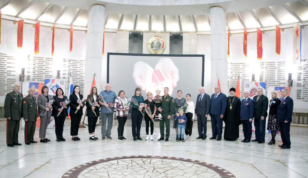 Военный комиссар Волгоградской области полковник Андрей Летунов и Председатель Комитета по делам национальностей и казачества администрации Волгоградской области Эдуард Давыдовский передали ордена Мужества родным и близким награжденных посмертно за отвагу и самоотверженность, проявленные при исполнении воинского долга: старшего лейтенанта Рогачева Ярослава Олеговича, старшего сержанта Попова Романа Васильевича, ефрейтора Бережнова Богдана Александровича, ефрейтора Малашина Дмитрия Александровича, рядового Резвякова Вячеслава Анатольевича, рядового Шевченко Николая Григорьевича, рядового Гирейко Александра Александровича, рядового Киреева Юрия Васильевича, рядового Кривохижина Евгения Васильевича.