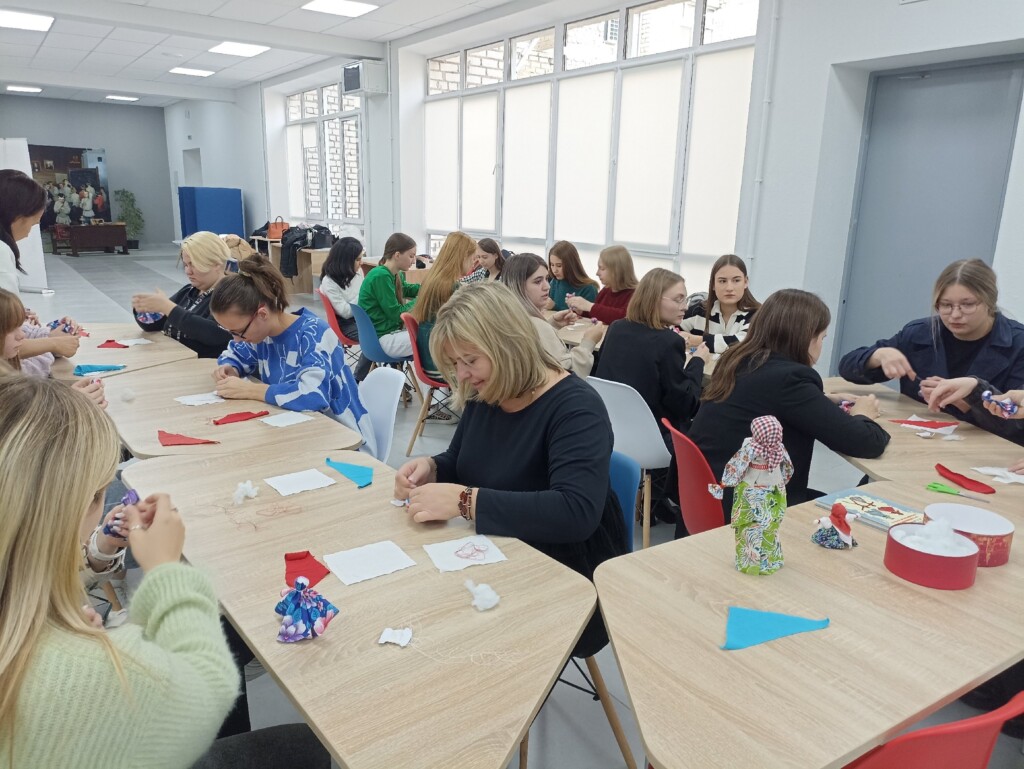 Второй частью программы стал мастер-класс по народной кукле от мастера Инны Никитиной. Сами студенты подготовили народные игры.