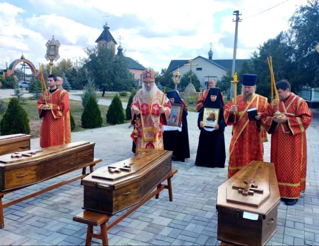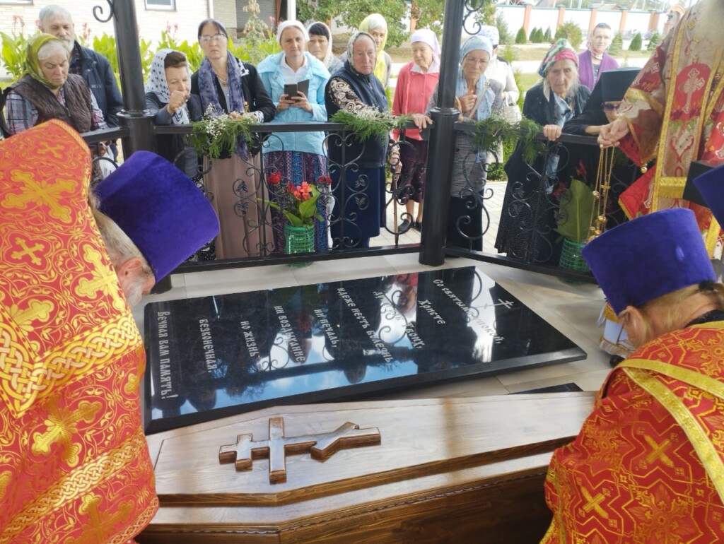 По завершении литургии священнослужители совершили заупокойную литию о почивших священнослужителях и сестрах обители, после чего честные останки, обретенные при раскопках в обители, были захоронены в усыпальнице.