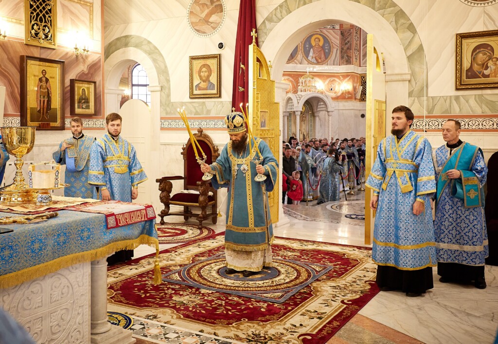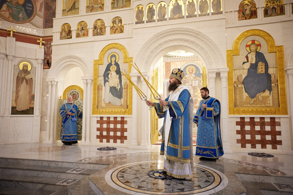 Богослужебные песнопения исполнял хор собора под управлением регента Марии Зимовец и детский архиерейский хор под управлением педагога Светланы Терниковой.