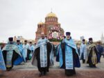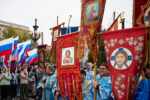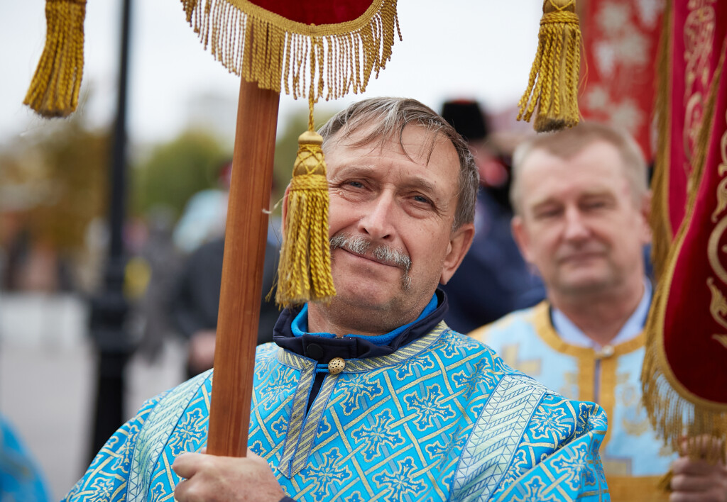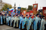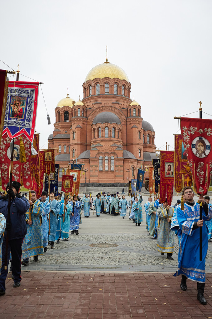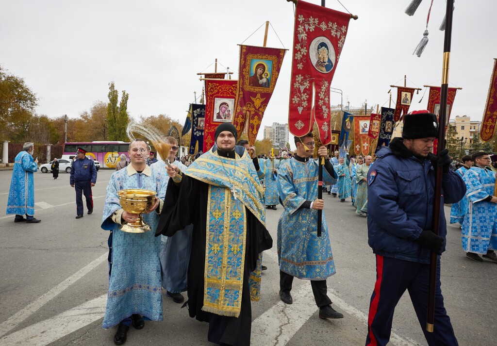 В завершение богослужения состоялся Крестный ход со старинной иконой, которая была передана в дар собору год назад. Верующие вместе с главой Волгоградской митрополии и духовенством, с пением молитвословий прошествовали от Александро-Невского собора до верхней террасы Центральной набережной.