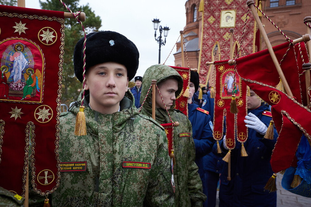 На богослужении также молились настоятельница Свято-Вознесенской женской обители города Дубовки игумения Анна (Ерофеева) с сестрами, представители казачества, сестры милосердия Свято-Елисаветинского сестричества и сестричества в честь святой мученицы Наталии.