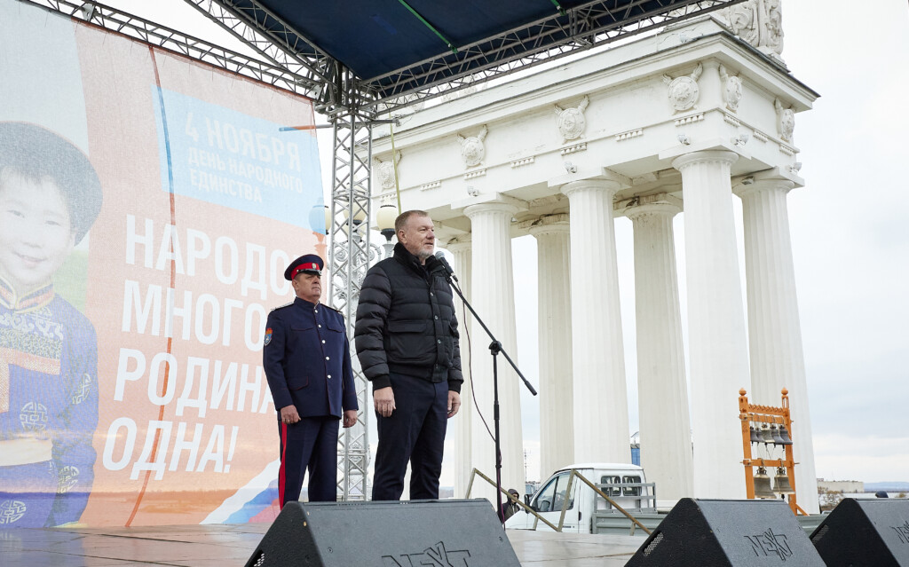 Затем состоялось праздничное мероприятие. Со словами приветствия и поздравления с Днем народного единства к волгоградцам обратились представители традиционных религиозных конфессий, общественные деятели, участник специальной военной операции.