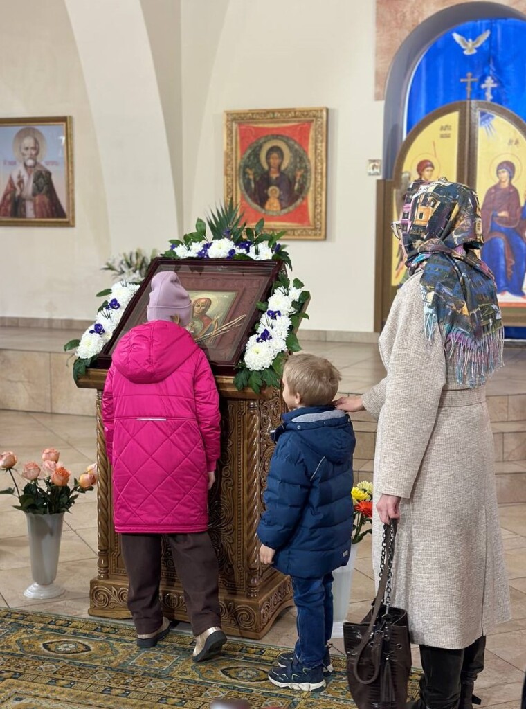 Здесь он будет находиться до завтра, 4 ноября 15:00, затем его перенесут в храм святого благоверного князя Александра Невского в поселке Верхняя Ельшанка.
