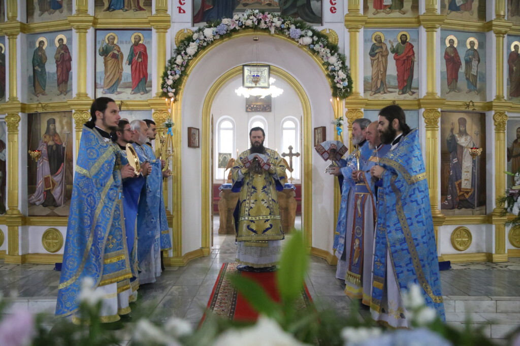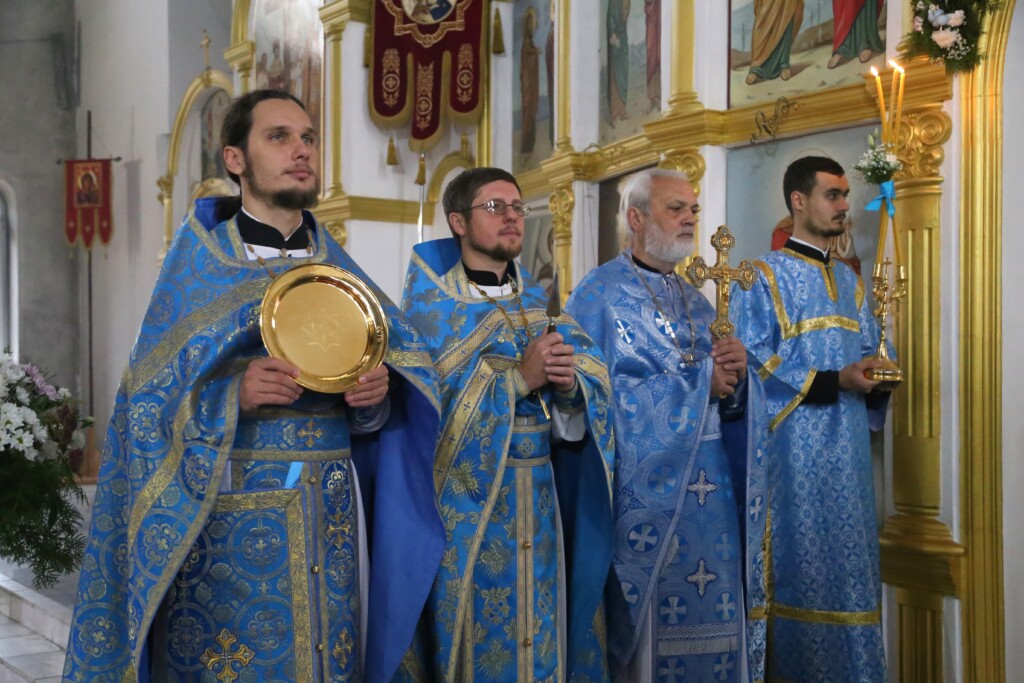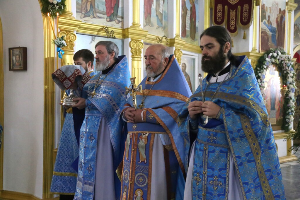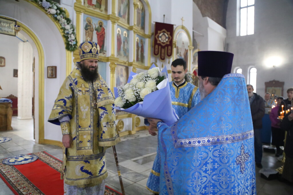 Его Высокопреосвященству сослужили: благочинный приходов Городищенского округа, настоятель храма иерей Алексий Суханов, протоиерей Василий Желубов, протоиерей Владислав Сологуб, иерей Андрей Кононов, иерей Максим Александровский, иерей Максим Яценко, иерей Илия Неклюдов.