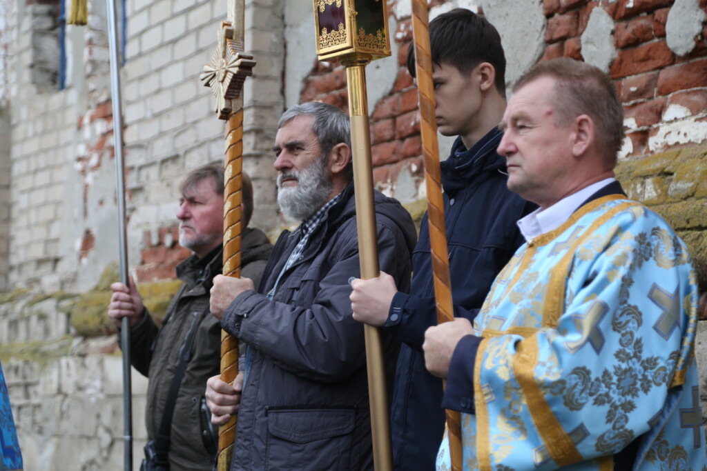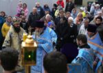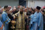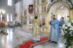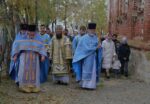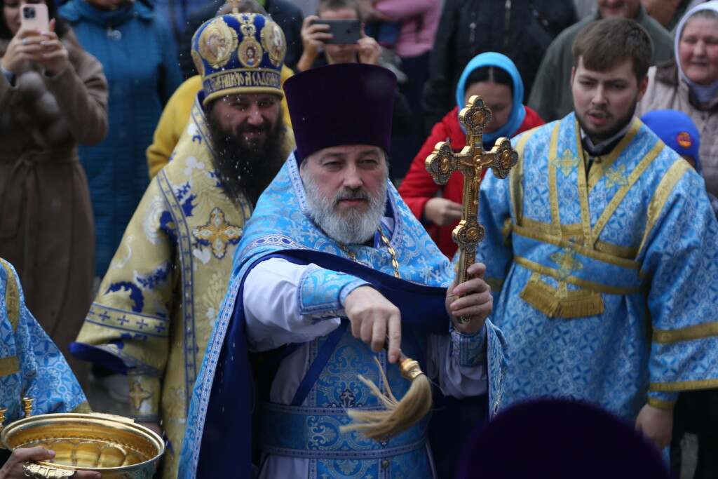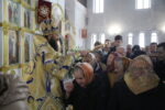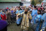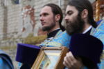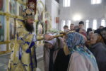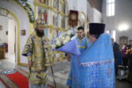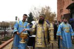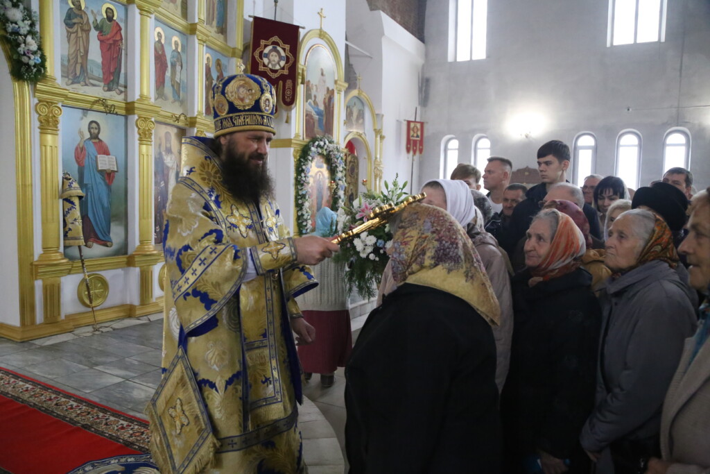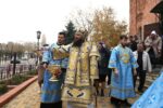 Верующие вместе с духовенством и архипастырем совершили Крестный ход вокруг храма.