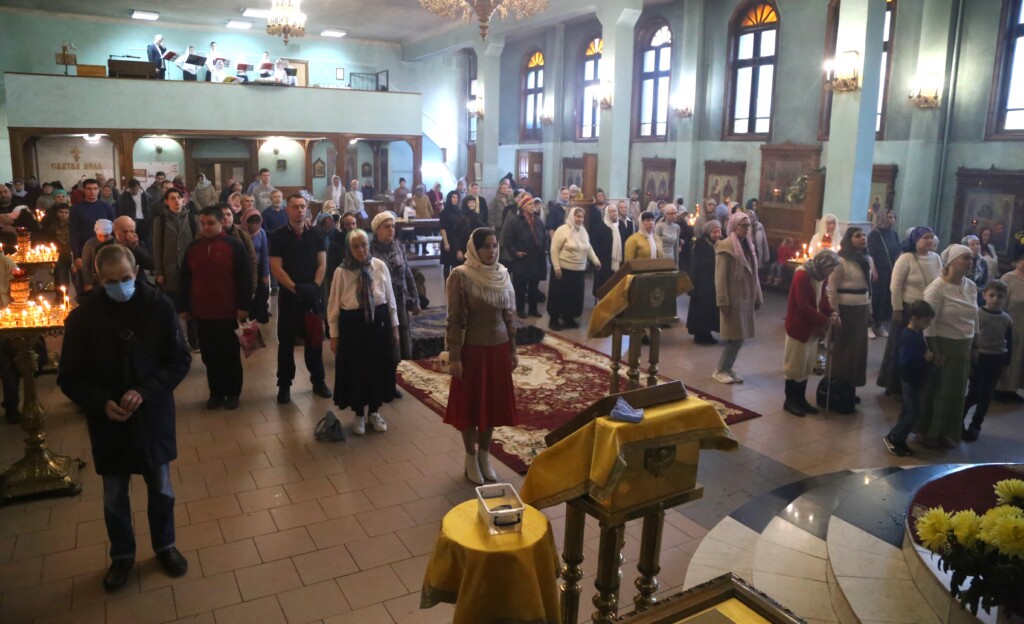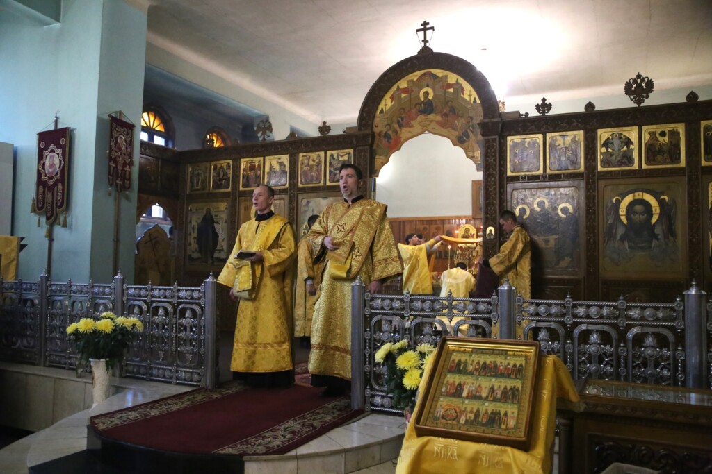Богослужебные песнопения исполнил хор под управлением регента Карины Солодовниковой.