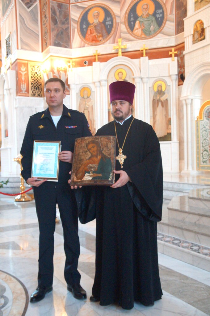 Сегодня в кафедральном соборе святого благоверного князя Александра Невского города Волгограда состоялась передача найденной недавно иконы святого пророка Иоанна Предтечи. Прежде этот образ, ориентировочно второй половины XIX века, находился в часовне святого князя Александра Невского. Он был украден, а затем обнаружен сотрудниками полиции.